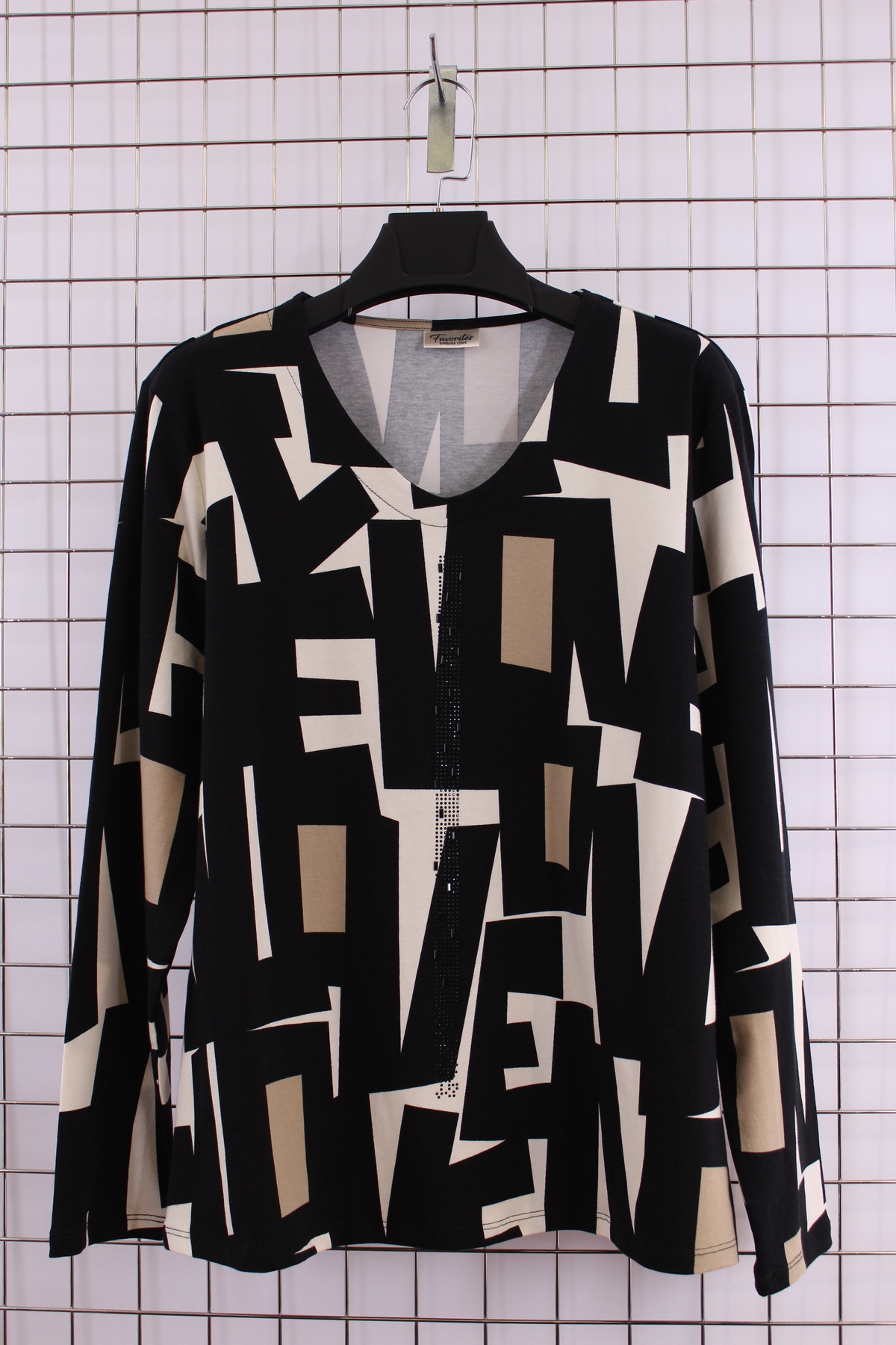 Kadın Büyük Beden Likralı Siyah-Ekru Karışık Desen Truvakar Kol Anne Penye Tişört Bluz Kadın Büyük Beden Likralı Siyah-Ekru Karışık Desen Truvakar Kol Anne Penye Tişört Bluz 1286 2XL