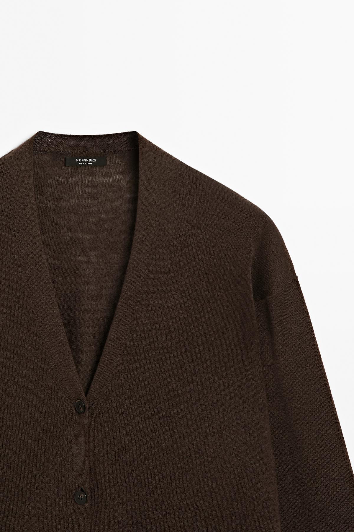 Uzun keten karışımlı triko hırka Uzun keten karışımlı triko hırka 00110779205686587 L