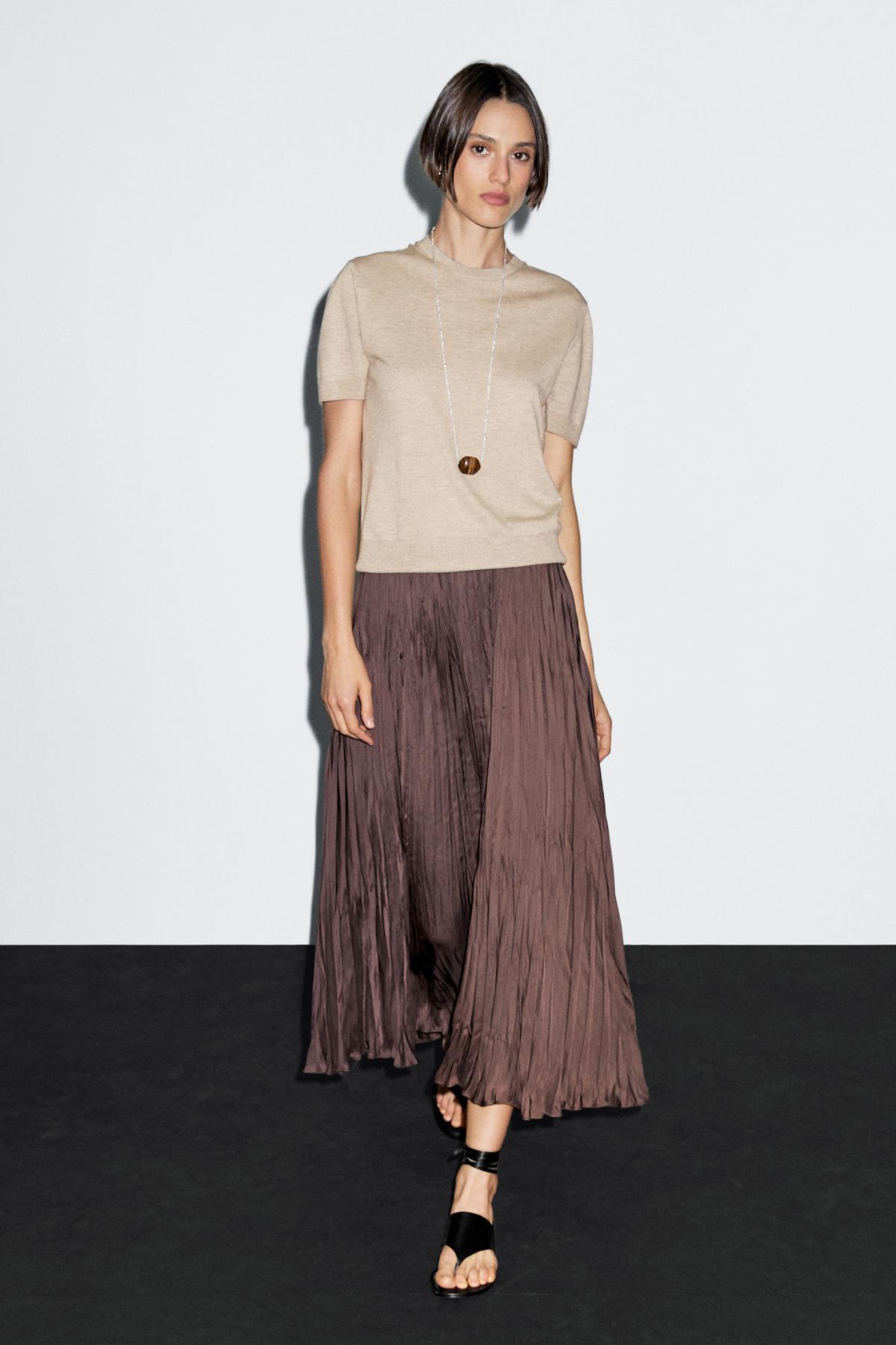 Kısa kollu yün karışımlı triko kazak Kısa kollu yün karışımlı triko kazak 00110779205664580 L