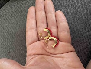 Mercan Taşlı Altın Kaplama Gümüş Yarım Halka Küpe 7397 Mercan Taşlı Altın Kaplama Gümüş Yarım Halka Küpe 7397 ME5568 تک سایز