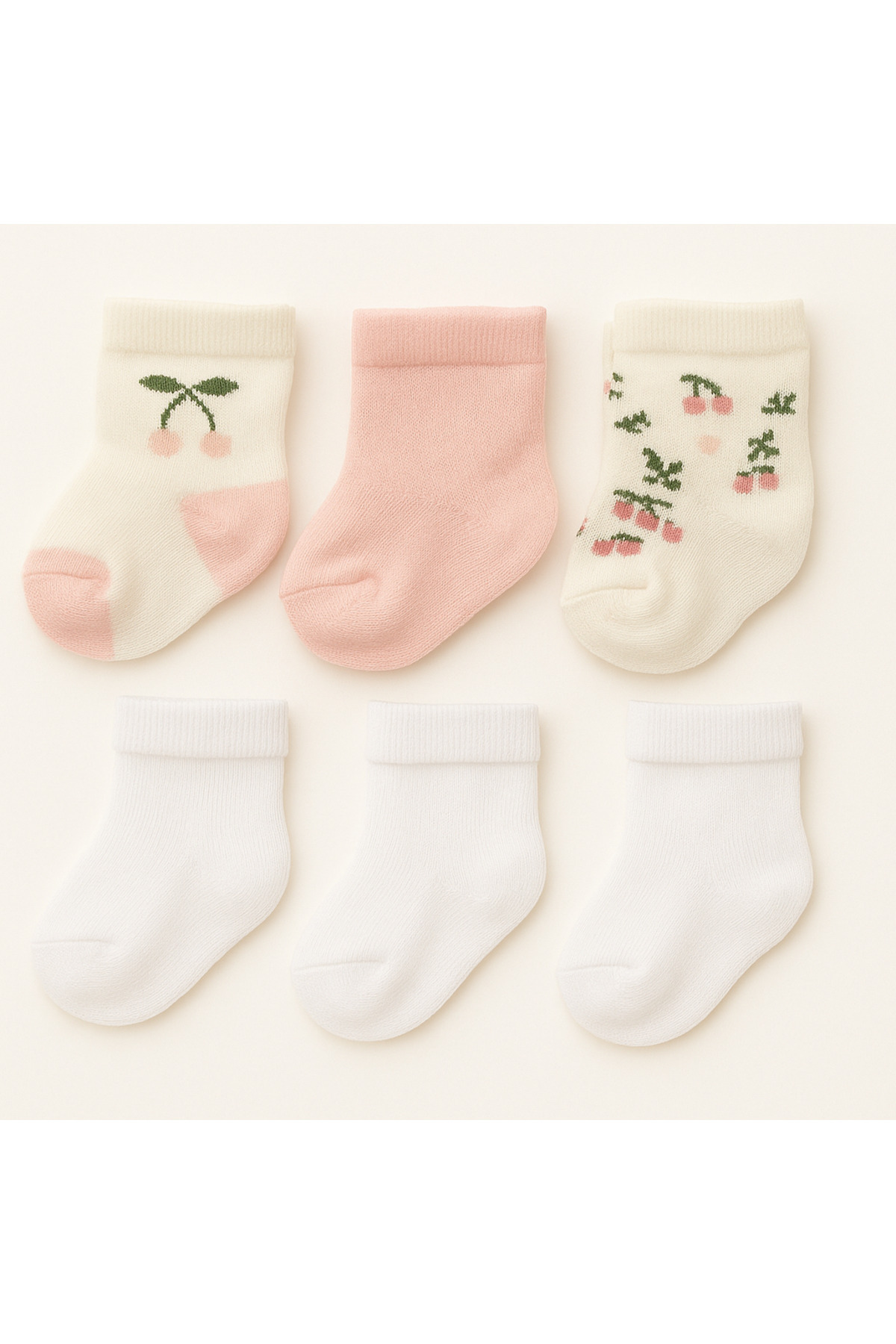 6'lı Bebek Çorap Seti – Desenli & Düz Renkli, Yumuşak Pamuklu 6'lı Bebek Çorap Seti – Desenli & Düz Renkli, Yumuşak Pamuklu 3 Yeni Doğan