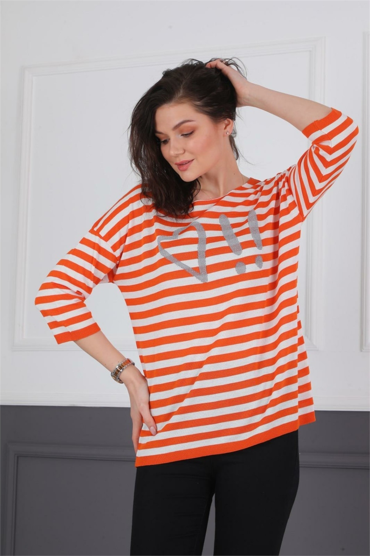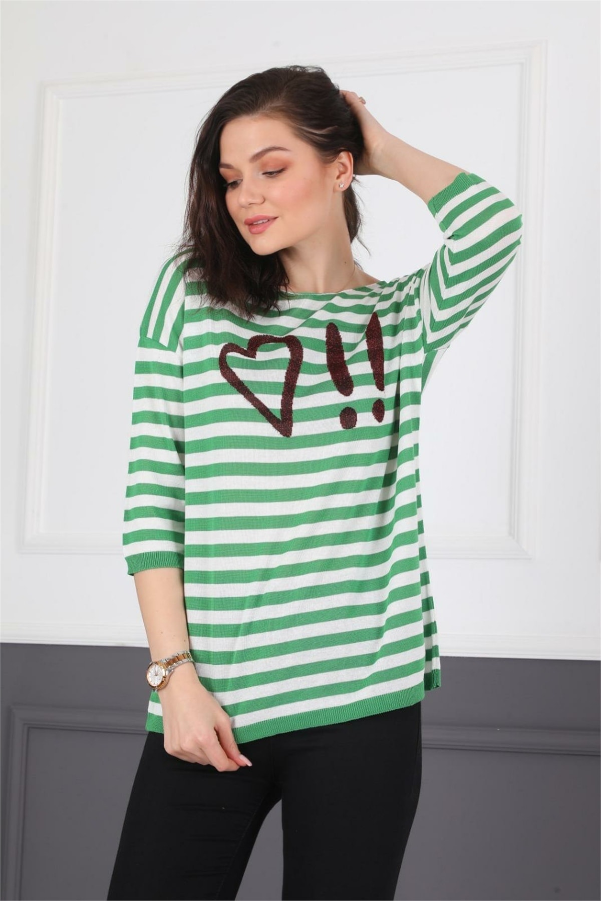 Kadın Yazlık Merserize Çizgili Yarım Kol Önü Kalp Baskılı Bisklet Yaka Bluz Kadın Yazlık Merserize Çizgili Yarım Kol Önü Kalp Baskılı Bisklet Yaka Bluz Sdlv371103 48