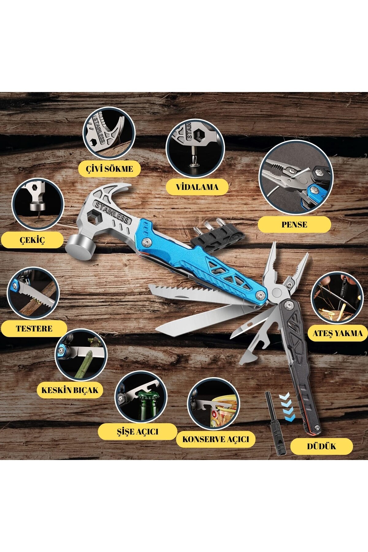 Outdoor Profesyonel Çakı Çekiç Pense Ateş Taşı Vidalama Kamp Piknik Ve Doğa Çok Fonksiyonlu Alet Set
