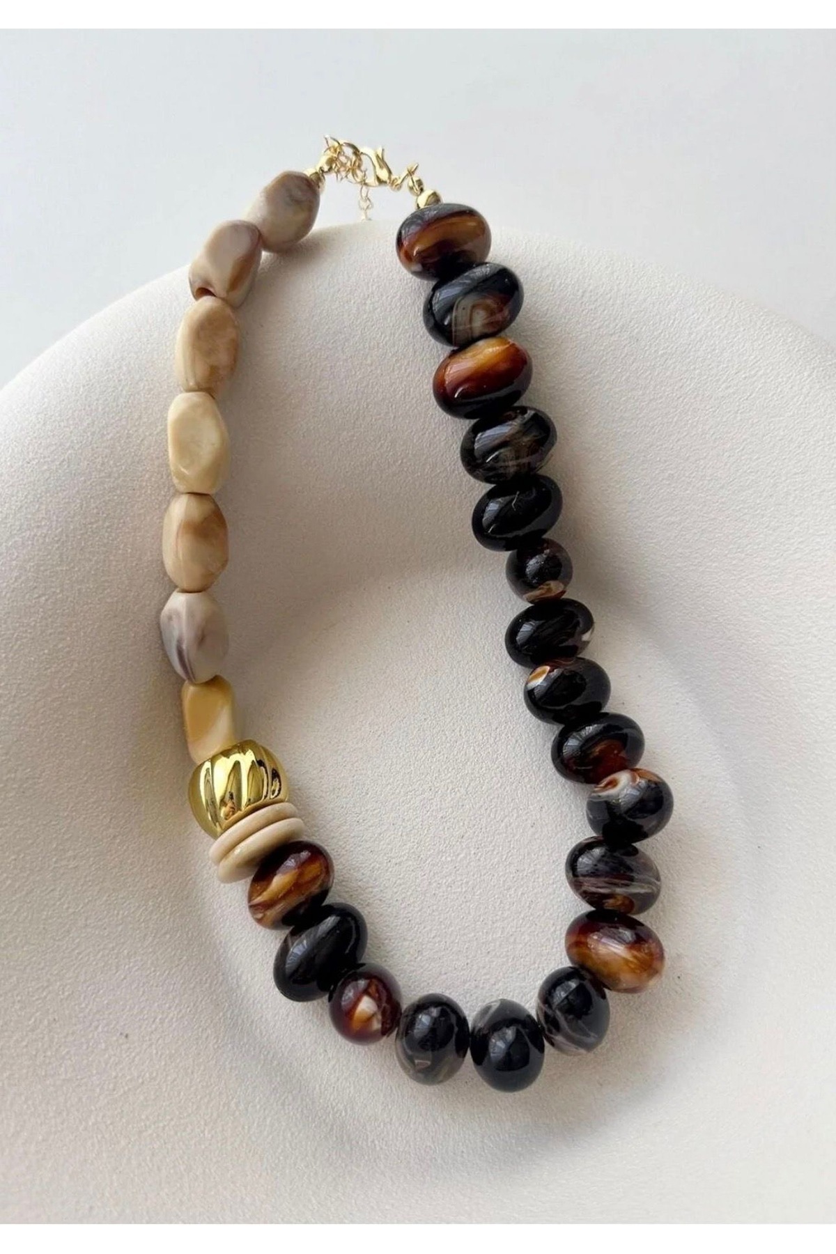 Kemik Akrilik Gold Boncuk Detay Kolye Kemik Akrilik Gold Boncuk Detay Kolye INIT000271 47 cm