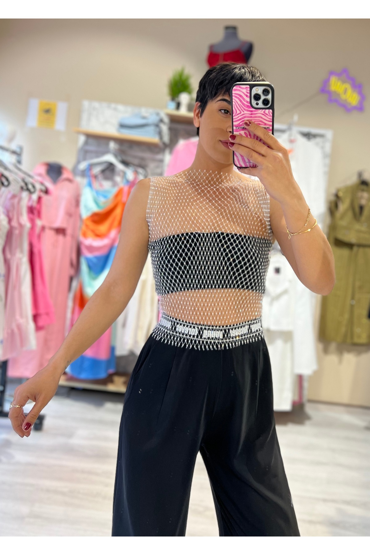 Beyaz File Taşlı Kolsuz Bluz Beyaz File Taşlı Kolsuz Bluz FT Standart
