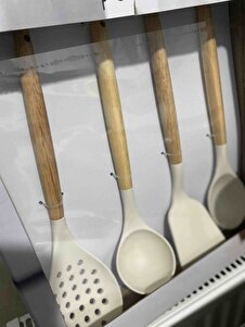 3166 Bambu Ahşap Saplı Silikon 4 Parça Servis Takımı Seti Beyaz 3166 Bambu Ahşap Saplı Silikon 4 Parça Servis Takımı Seti Beyaz تک سایز