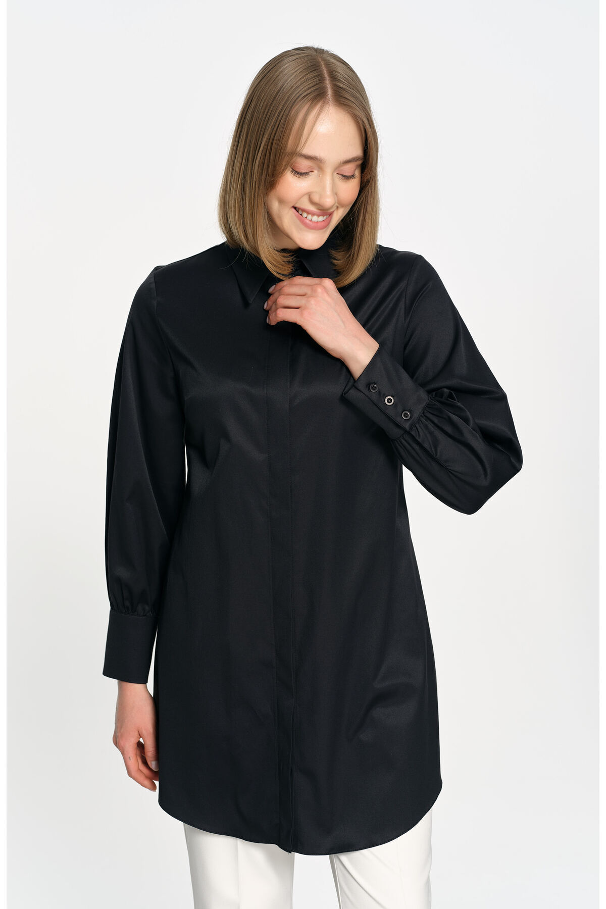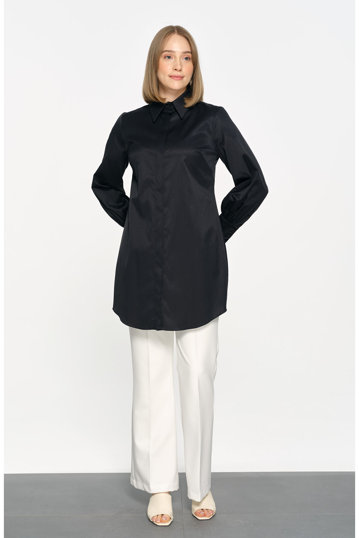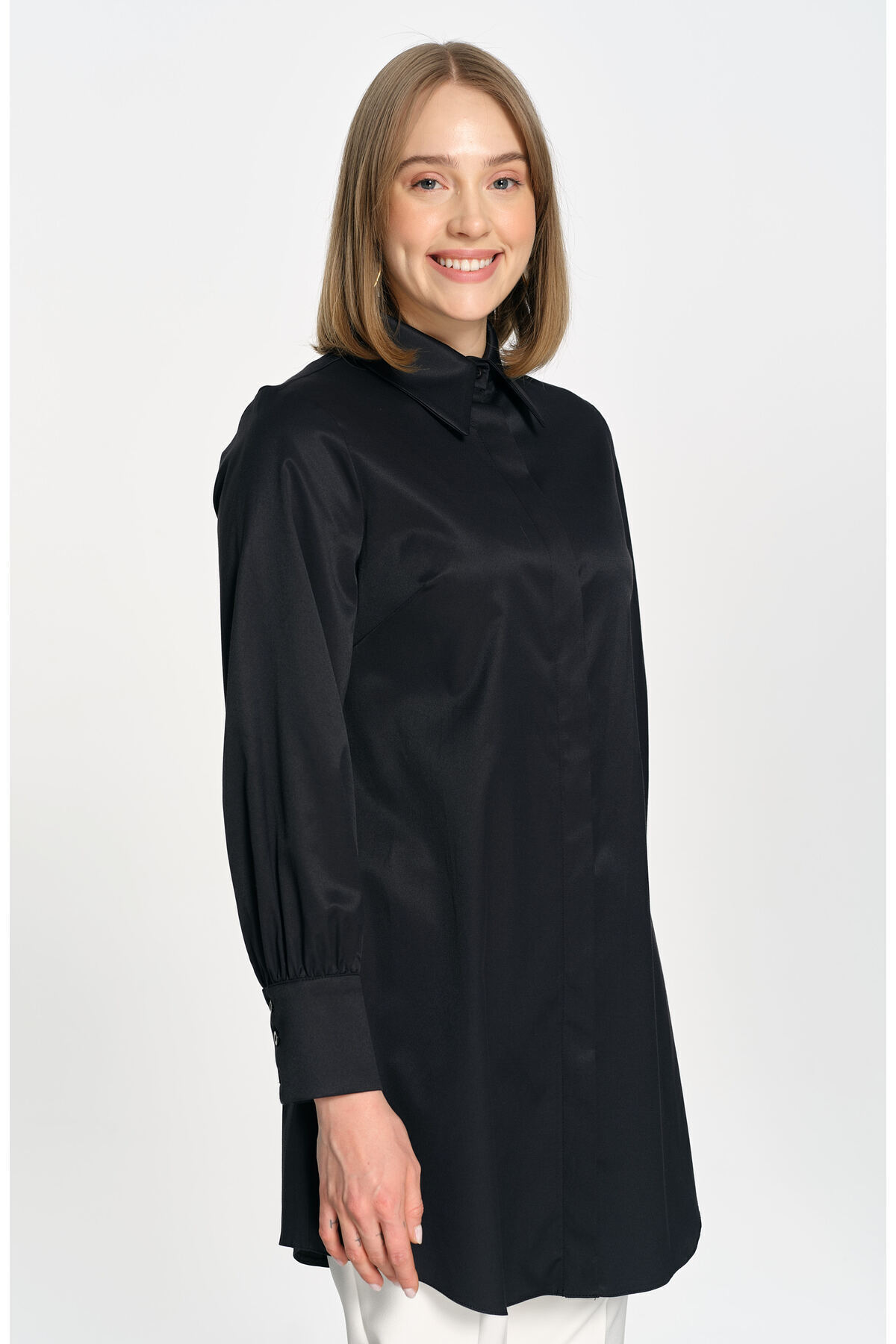Premium Balon Kol Midi Siyah Gömlek Premium Balon Kol Midi Siyah Gömlek FA2025BS-3278 XL
