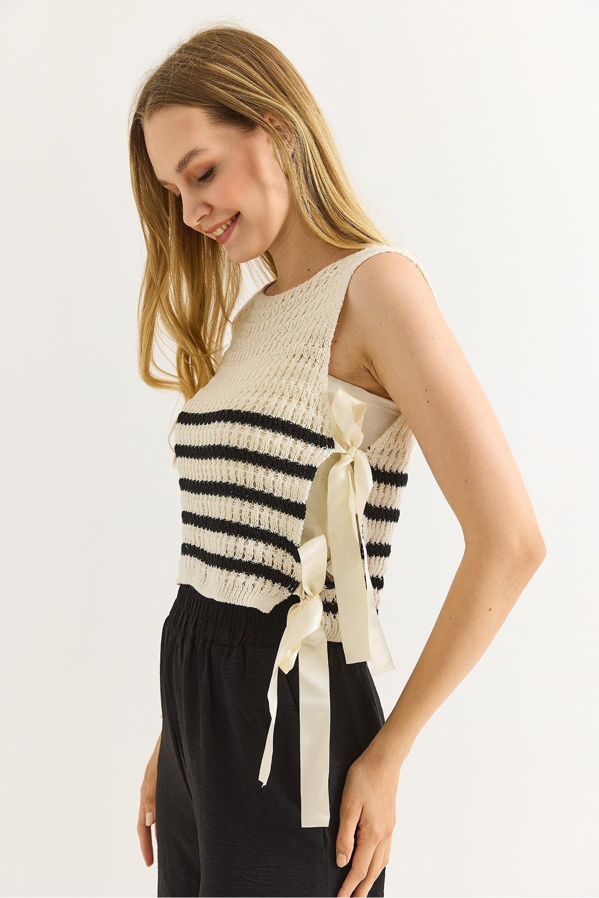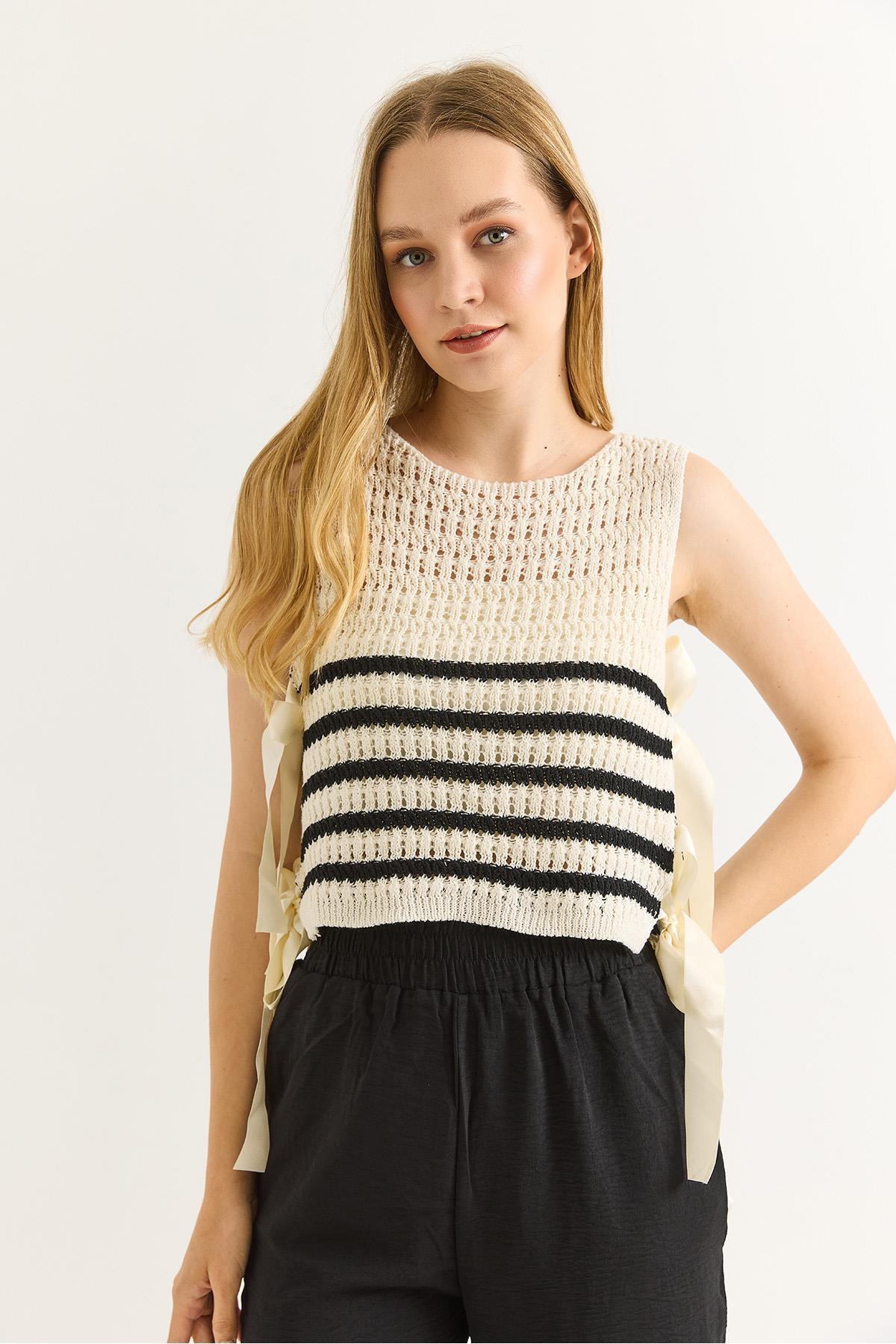 Yandan Bağlamalı Sİyah Beyaz Triko Yelek Yandan Bağlamalı Sİyah Beyaz Triko Yelek 500255BYZXBLZ Standart
