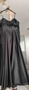 Kolları Dantelli Siyah Saten Abiye Elbise Kolları Dantelli Siyah Saten Abiye Elbise L0011705 48