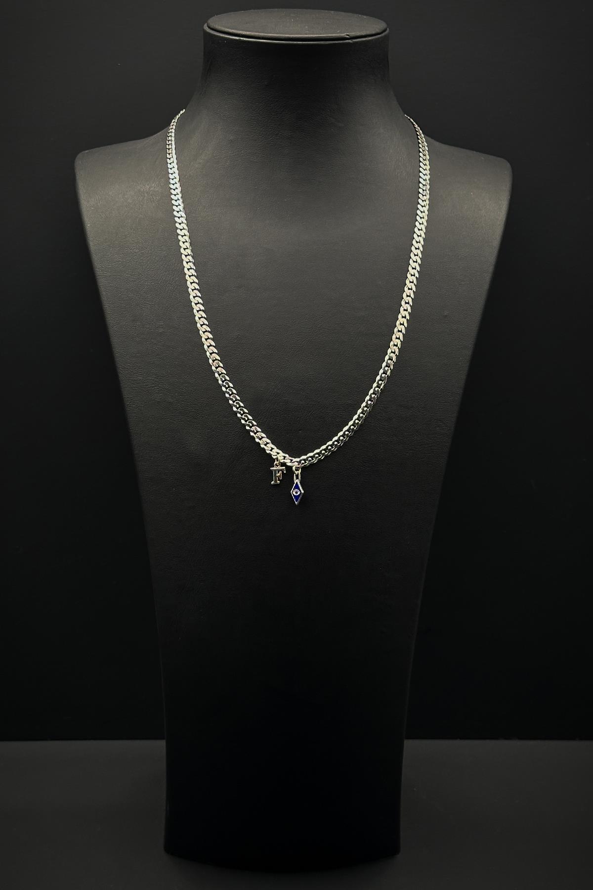 925 Ayar Gümüş İtalyan Model Nazar Boncuk ve Harfli Erkek Kolye FRJ30839-939-A 925 Ayar Gümüş İtalyan Model Nazar Boncuk ve Harfli Erkek Kolye FRJ30839-939-A تک سایز
