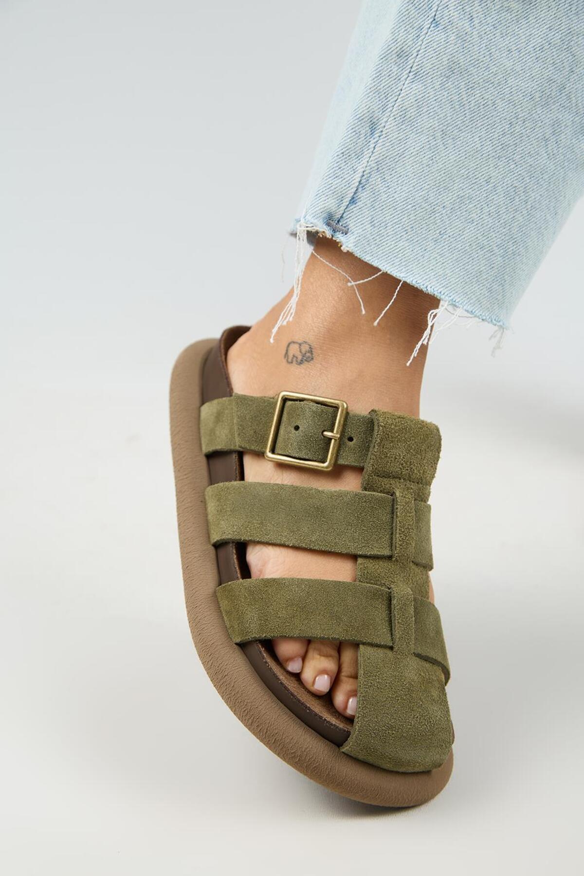 Brancato Kadın Hakiki Deri Tokalı Bantlı Sabo Haki Terlik Brancato Kadın Hakiki Deri Tokalı Bantlı Sabo Haki Terlik MNJ.212 41