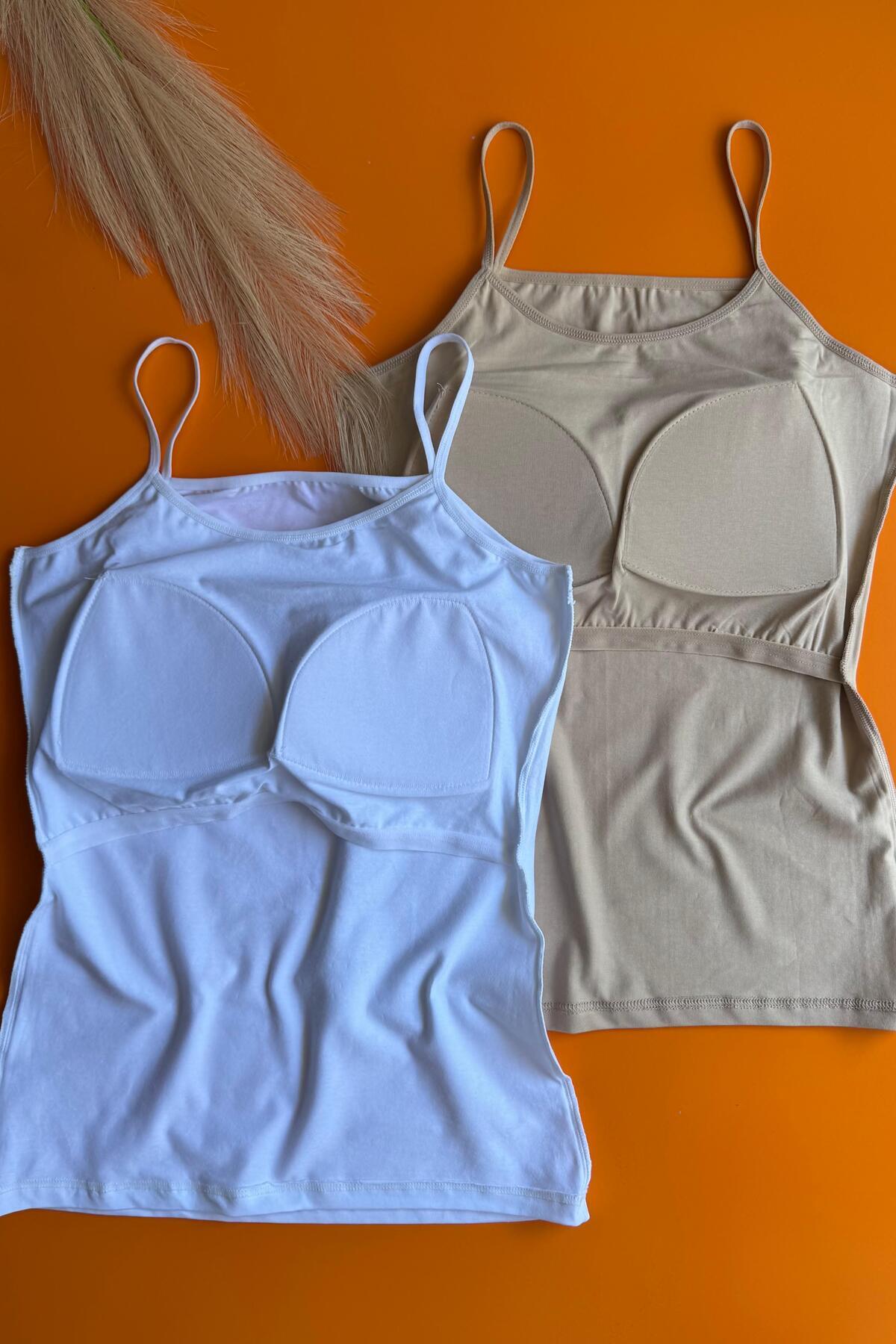 Bratique 2’li | İnce İp Askılı Pamuklu Ten ve Beyaz Sütyenli Kadın Atlet-Bluz Bratique 2’li | İnce İp Askılı Pamuklu Ten ve Beyaz Sütyenli Kadın Atlet-Bluz 66-E-53 2XL