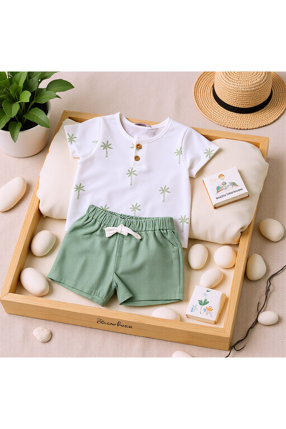 Baskılı Alt Üst T-shirt Şort Takım Baskılı Alt Üst T-shirt Şort Takım JVLTKM 9-12