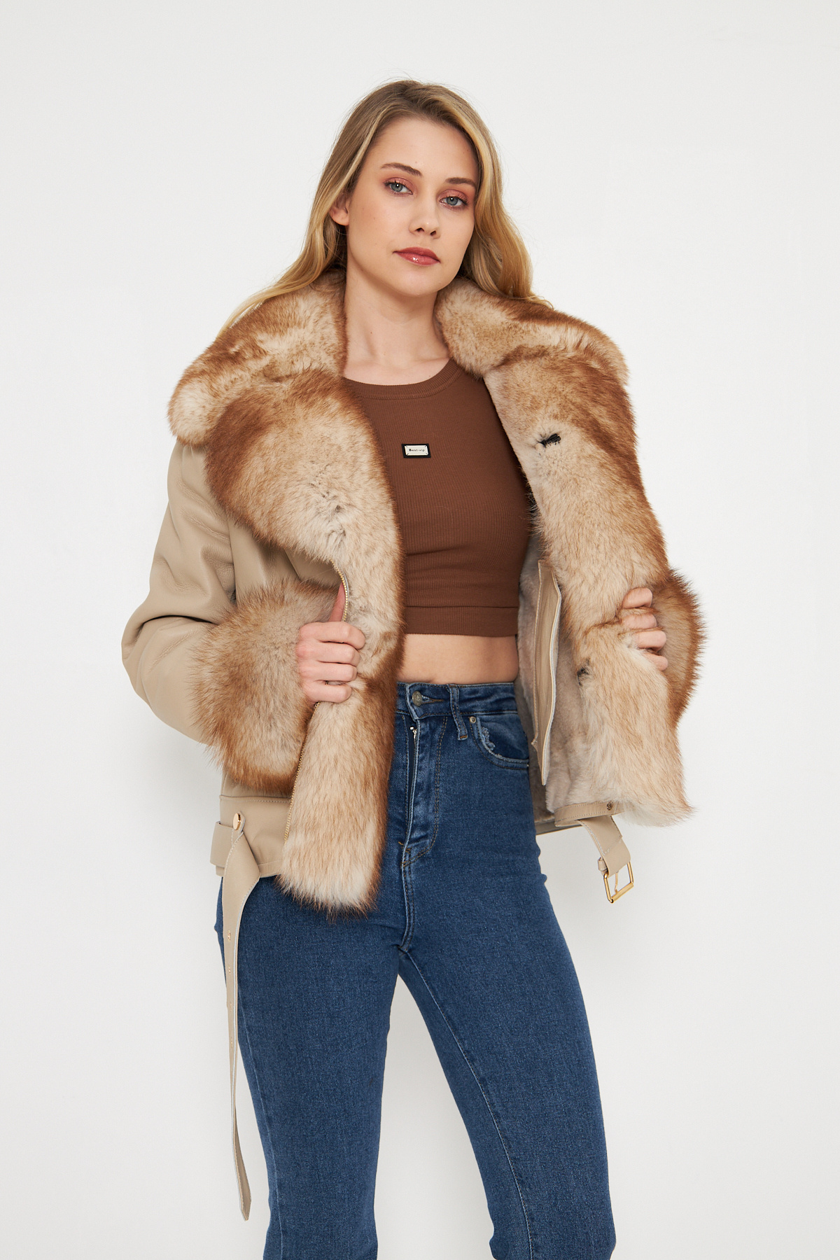Kadın Deri Ceket – İçi Kürklü, Özel Kürk Yakalı, Kemerli, Kürklü Manşetli, 58 cm, Bej - 114522 Kadın Deri Ceket – İçi Kürklü, Özel Kürk Yakalı, Kemerli, Kürklü Manşetli, 58 cm, Bej - 114522 TYC711PNAN170652798209522 XL