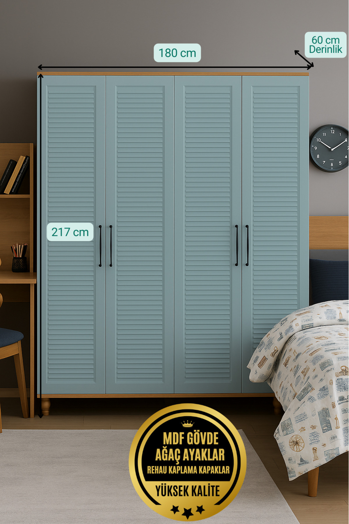 Mavi Dolap 4 Kapaklı-Çekmeceli | %100 MDF | REHAU Kaplama Kapaklar | Çekmeceli | Ağaç Ayaklı Mavi Dolap 4 Kapaklı-Çekmeceli | %100 MDF | REHAU Kaplama Kapaklar | Çekmeceli | Ağaç Ayaklı ARIONDLP80 217 cm