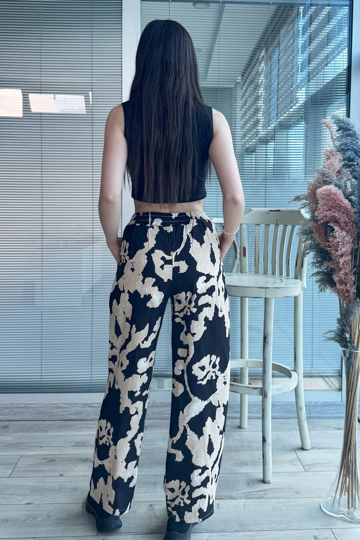 Desenli Beli Lastikli Rahat Kalıp Bol Paça Pantolon Desenli Beli Lastikli Rahat Kalıp Bol Paça Pantolon 41035359803 3XL