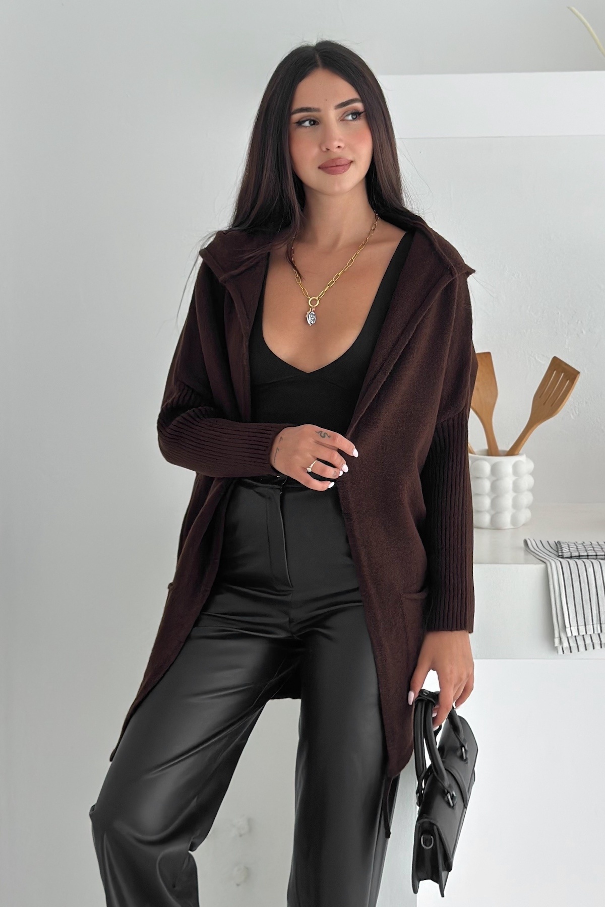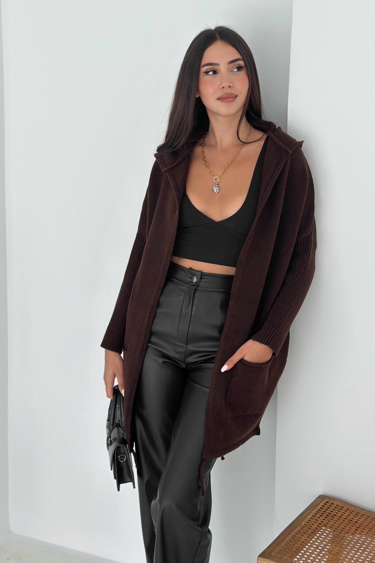 Kadın Kahverengi Yarasa Kol Çift Cepli Kapüşonlu Dökümlü Salaş Oversize Standart Beden Triko Hırka Kadın Kahverengi Yarasa Kol Çift Cepli Kapüşonlu Dökümlü Salaş Oversize Standart Beden Triko Hırka s75fbn8 Standart