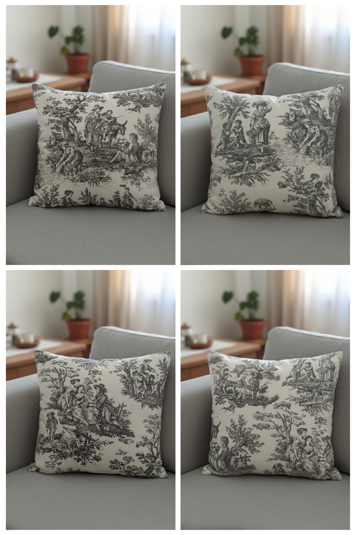 Kırlent Kılıfı 2'li Toile De Jouy Fransız Kır Evi Temalı Kırlent Kılıfı 2'li Toile De Jouy Fransız Kır Evi Temalı tdjcc001 40 x 40