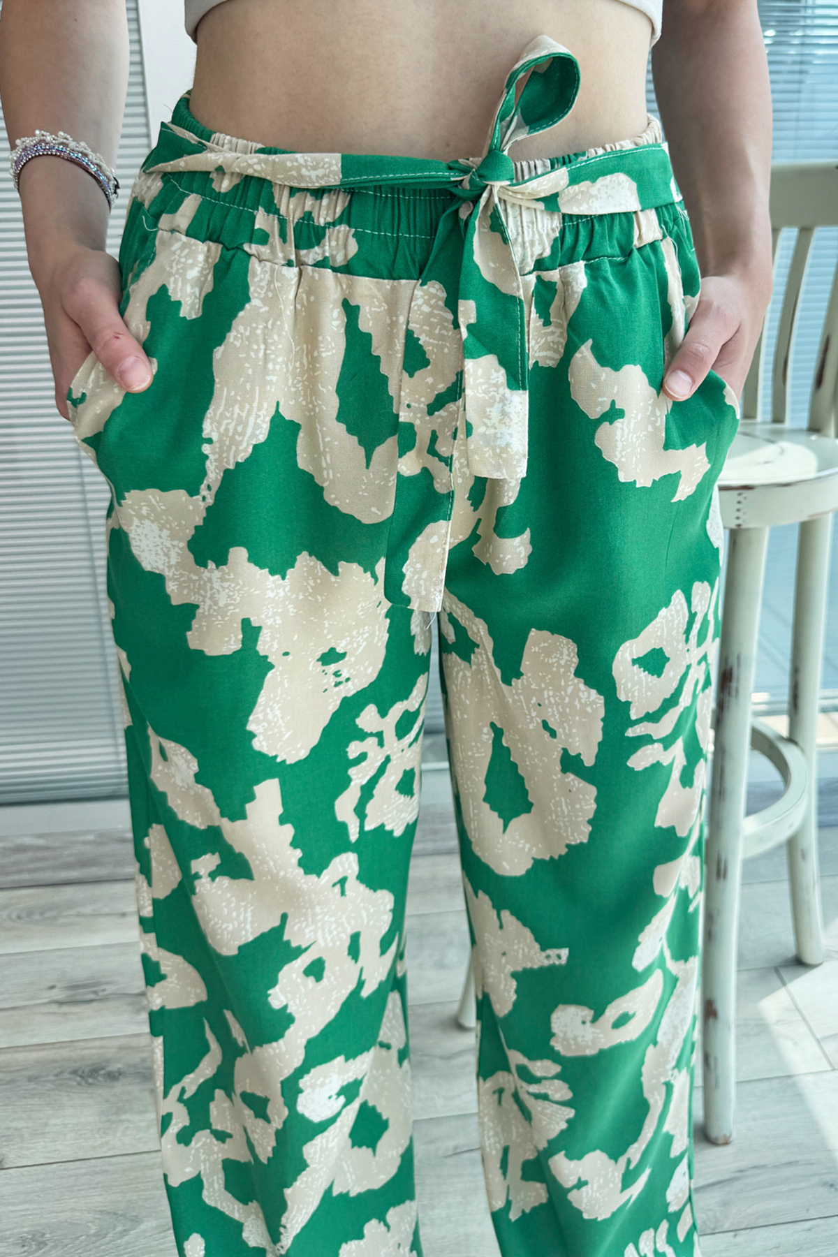 Desenli Beli Lastikli Rahat Kalıp Bol Paça Pantolon Desenli Beli Lastikli Rahat Kalıp Bol Paça Pantolon 41035359803 3XL