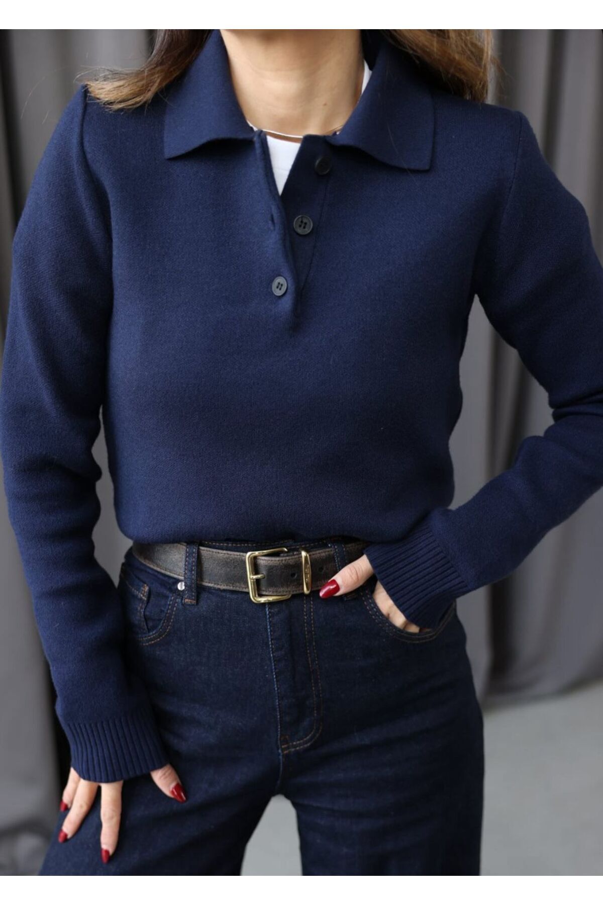 Beyaz Fitilli Polo Yaka Triko Kazak Beyaz Fitilli Polo Yaka Triko Kazak KDN19168 XL
