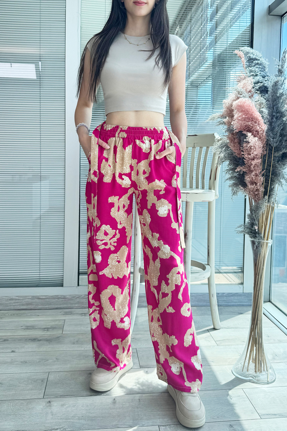 Desenli Beli Lastikli Rahat Kalıp Bol Paça Pantolon Desenli Beli Lastikli Rahat Kalıp Bol Paça Pantolon 41035359803 3XL