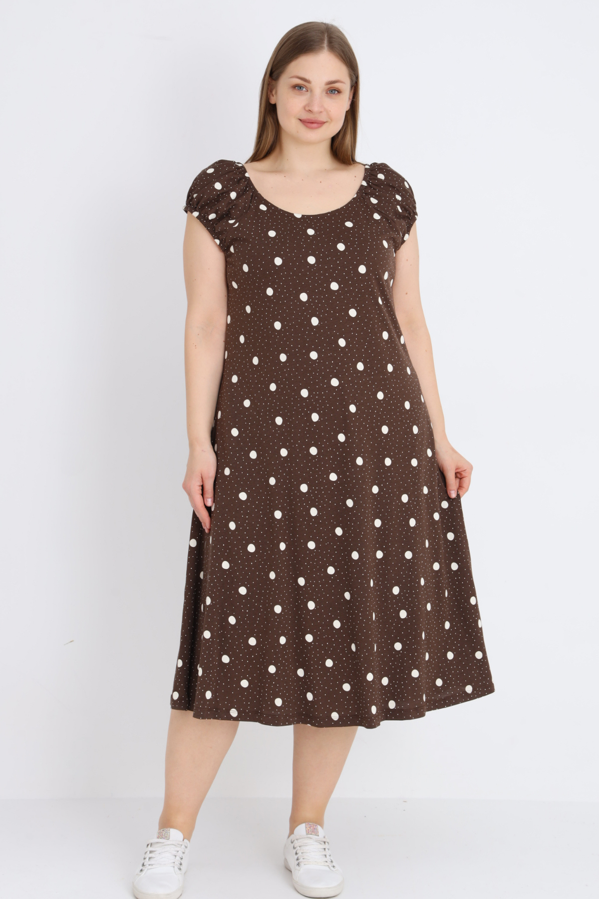 Kahverengi Puantiyeli Askılı Pamuklu Cepli Kadın Büyük Beden Elbise Kahverengi Puantiyeli Askılı Pamuklu Cepli Kadın Büyük Beden Elbise 25307 3XL
