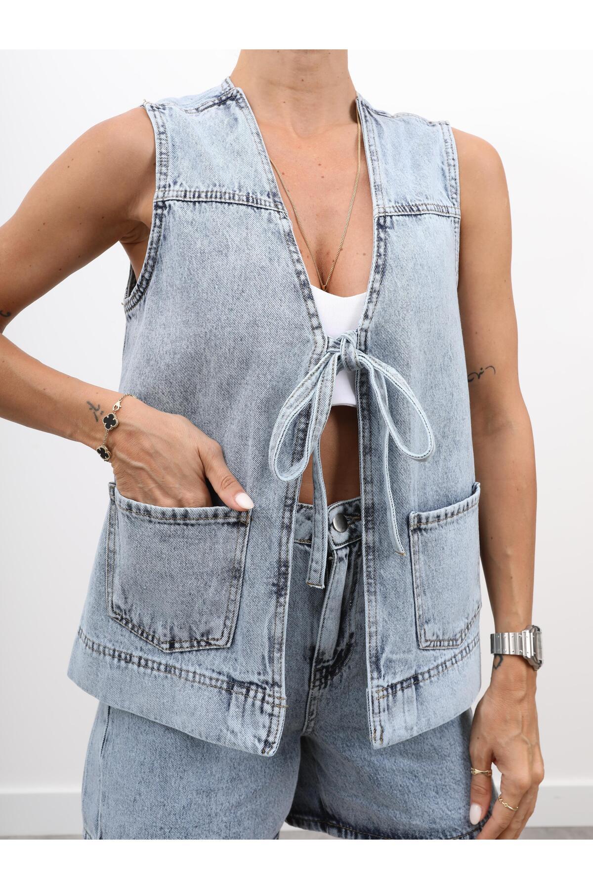 Kadın Denim Yelek Mavi Şort Takım Kadın Denim Yelek Mavi Şort Takım 25YŞ00176 L
