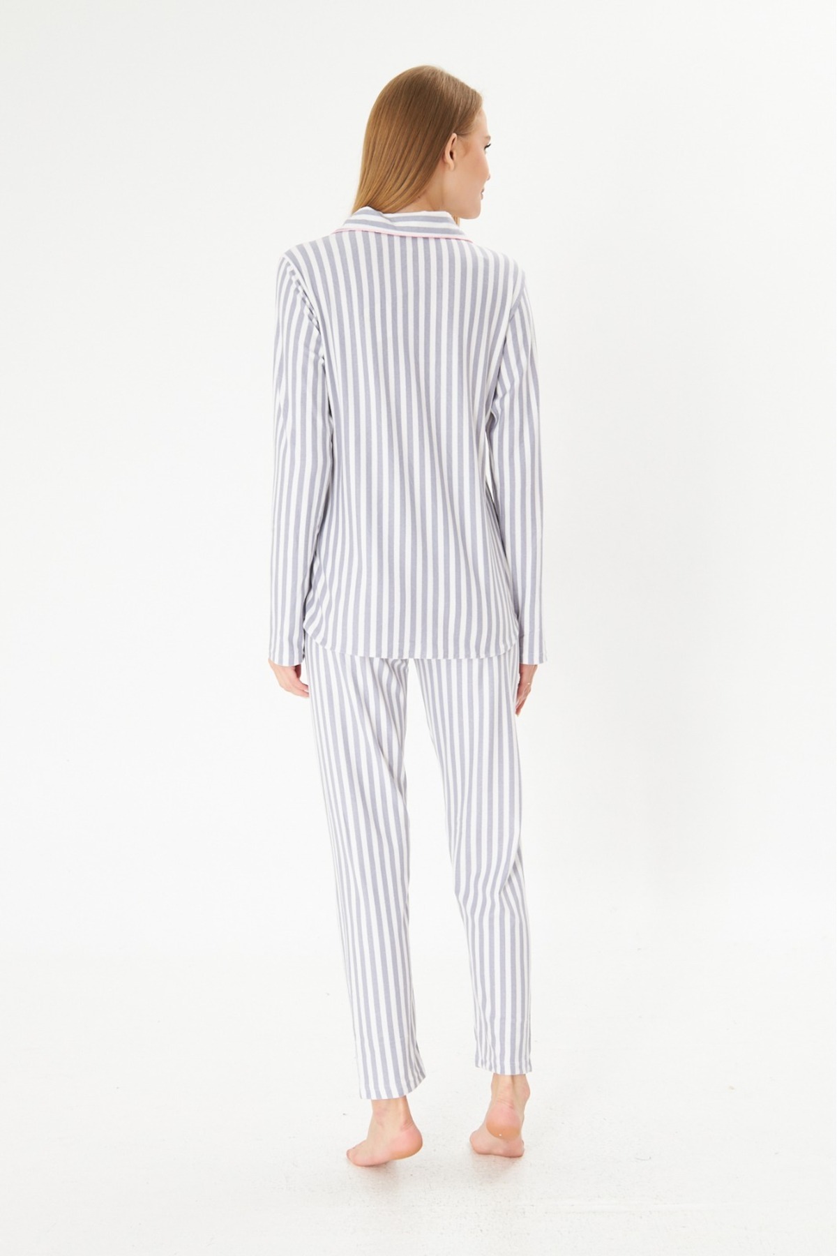 Kadın %100 Pamuklu Luxury Viskon Kumaş Gömlek Yaka Boydan Düğmeli Çizgili Pembe Biyeli Pijama Takımı Kadın %100 Pamuklu Luxury Viskon Kumaş Gömlek Yaka Boydan Düğmeli Çizgili Pembe Biyeli Pijama Takımı ç52012 2XL