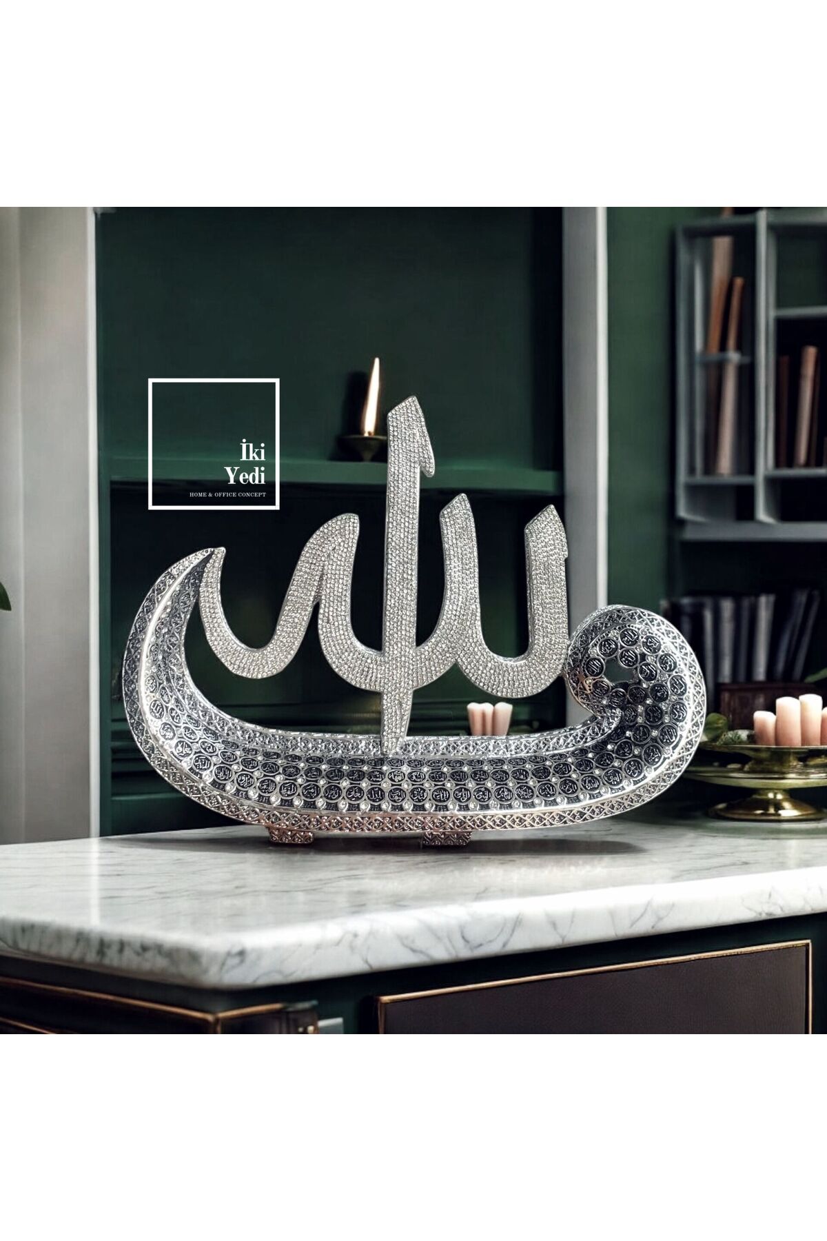 Allah C.C. ve Muhammed S.A.V. Yazılı Gümüş Renk Metal Dini Obje İslami Dekoratif Aksesuar Hediye Allah C.C. ve Muhammed S.A.V. Yazılı Gümüş Renk Metal Dini Obje İslami Dekoratif Aksesuar Hediye lfz778 تک سایز