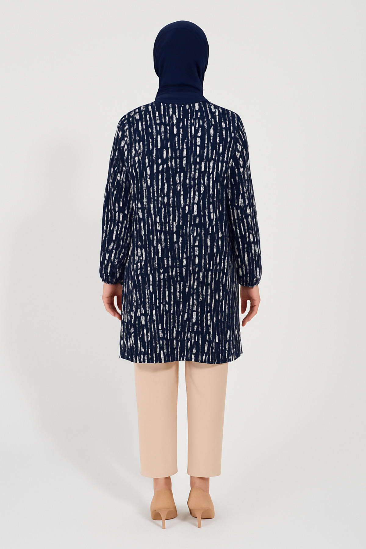 Kadın Cizgi Desenli Dokuma Tunik Mavi Kadın Cizgi Desenli Dokuma Tunik Mavi SLR001TDC 4XL