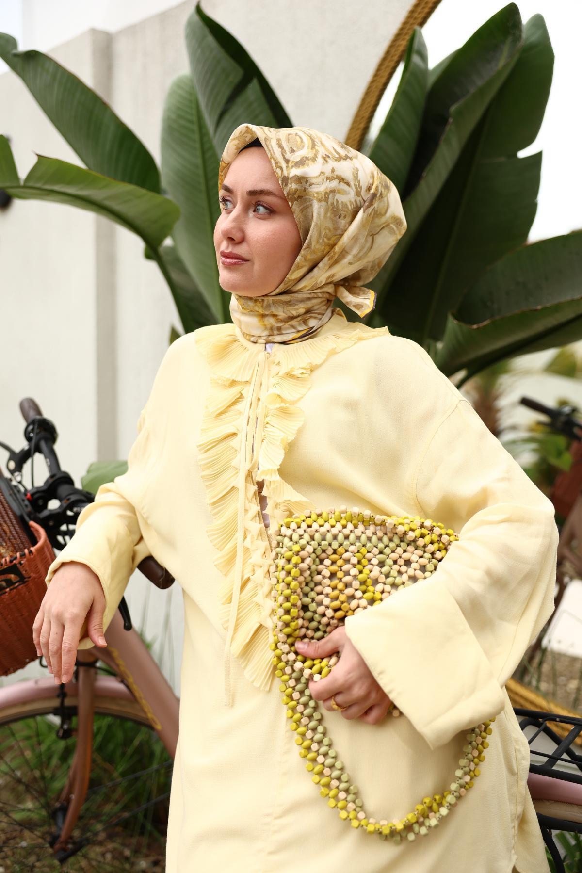 - Yıkama Talimatı : İpek eşarbınızı korumak için soğuk suda, elde ve ipek için özel şampuanla nazikçe yıkayıp doğrudan güneş ışığından uzak gölgede kurutun.