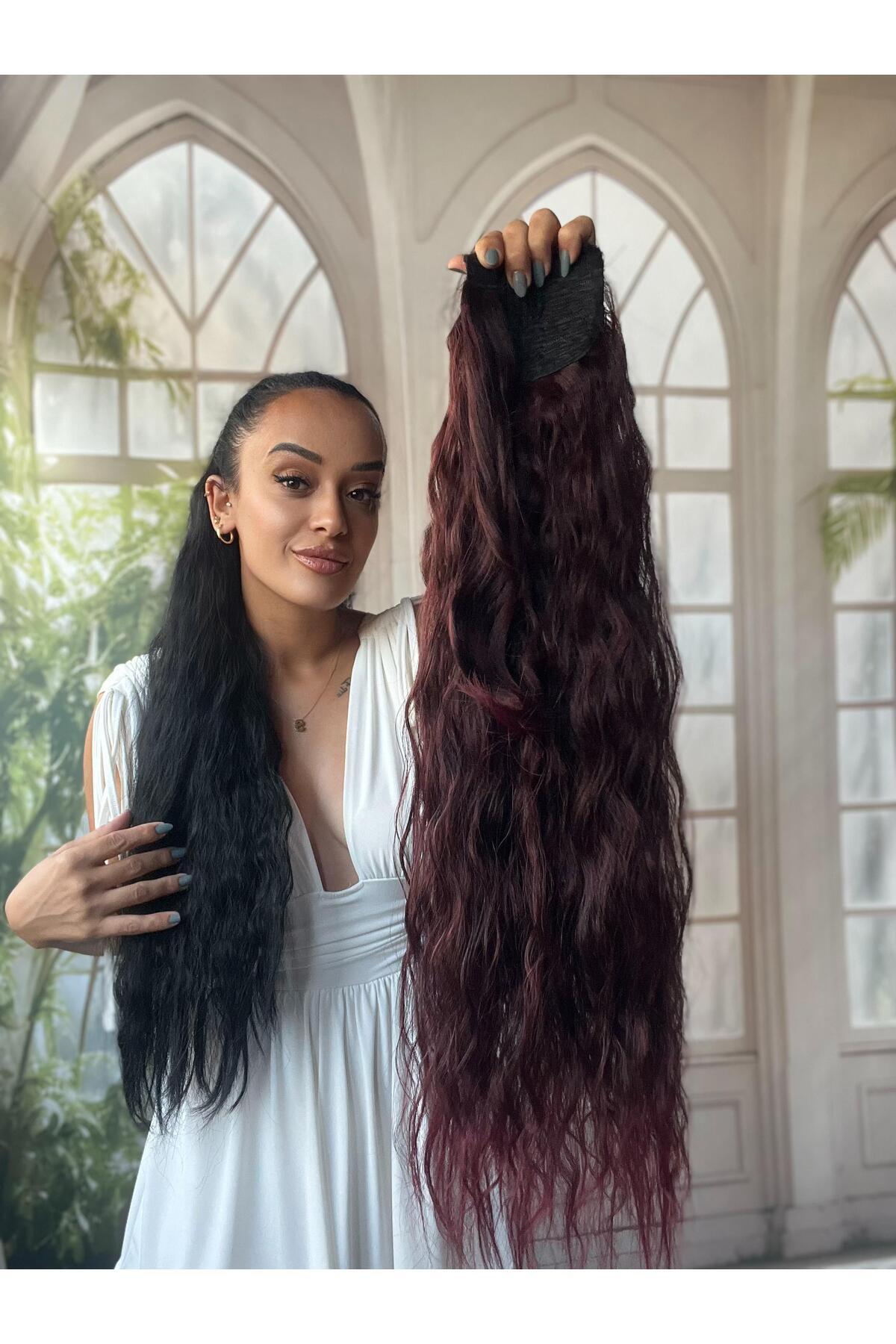 Koyu Kızıl At Kuyruğu Saç Bağlamalı Postiş 70 Cm Isıya Dayanıklı Afro dalgalı ponytail Koyu Kızıl At Kuyruğu Saç Bağlamalı Postiş 70 Cm Isıya Dayanıklı Afro dalgalı ponytail mm130 تک سایز