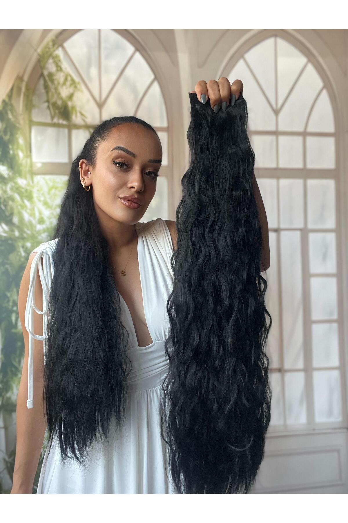 Siyah At Kuyruğu Saç Bağlamalı Postiş 70 Cm Isıya Dayanıklı Afro dalgalı ponytail Siyah At Kuyruğu Saç Bağlamalı Postiş 70 Cm Isıya Dayanıklı Afro dalgalı ponytail mm130 تک سایز