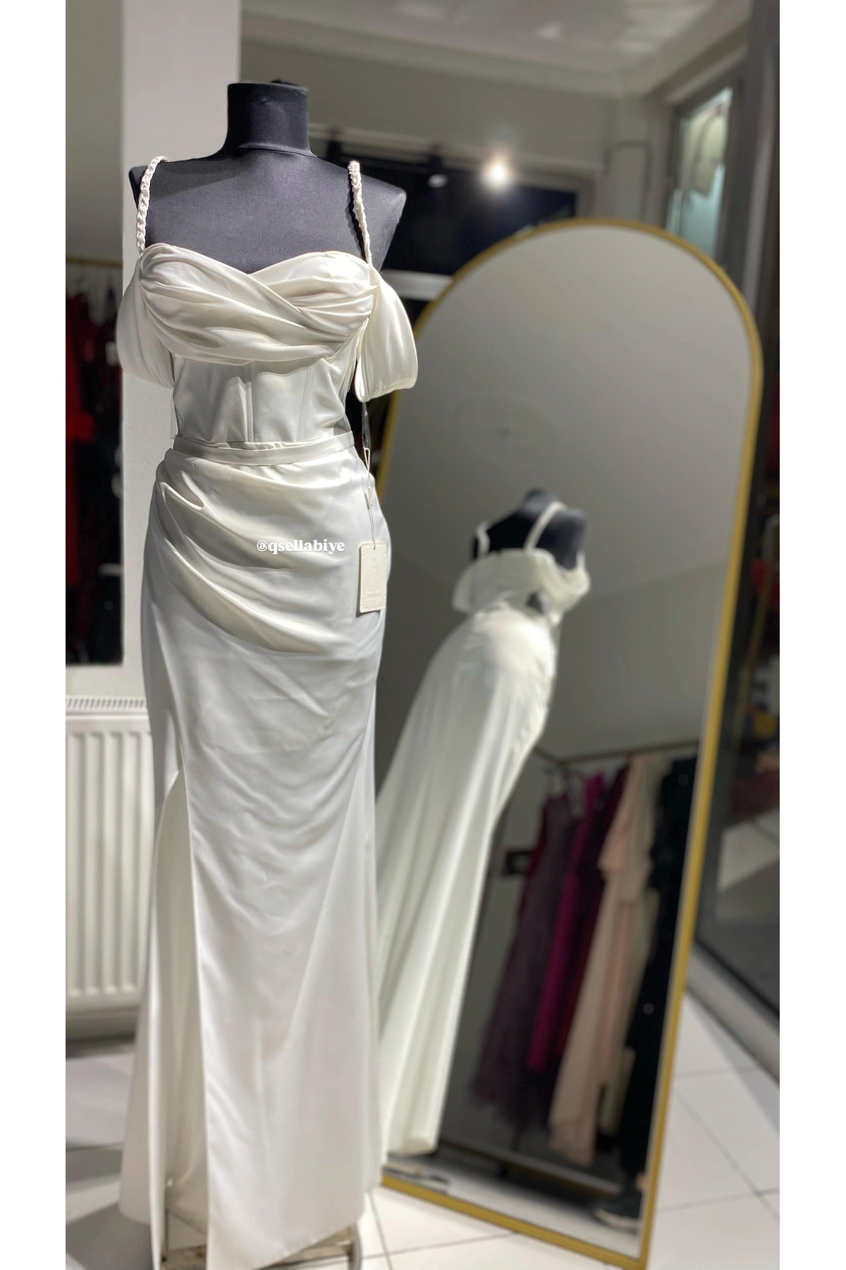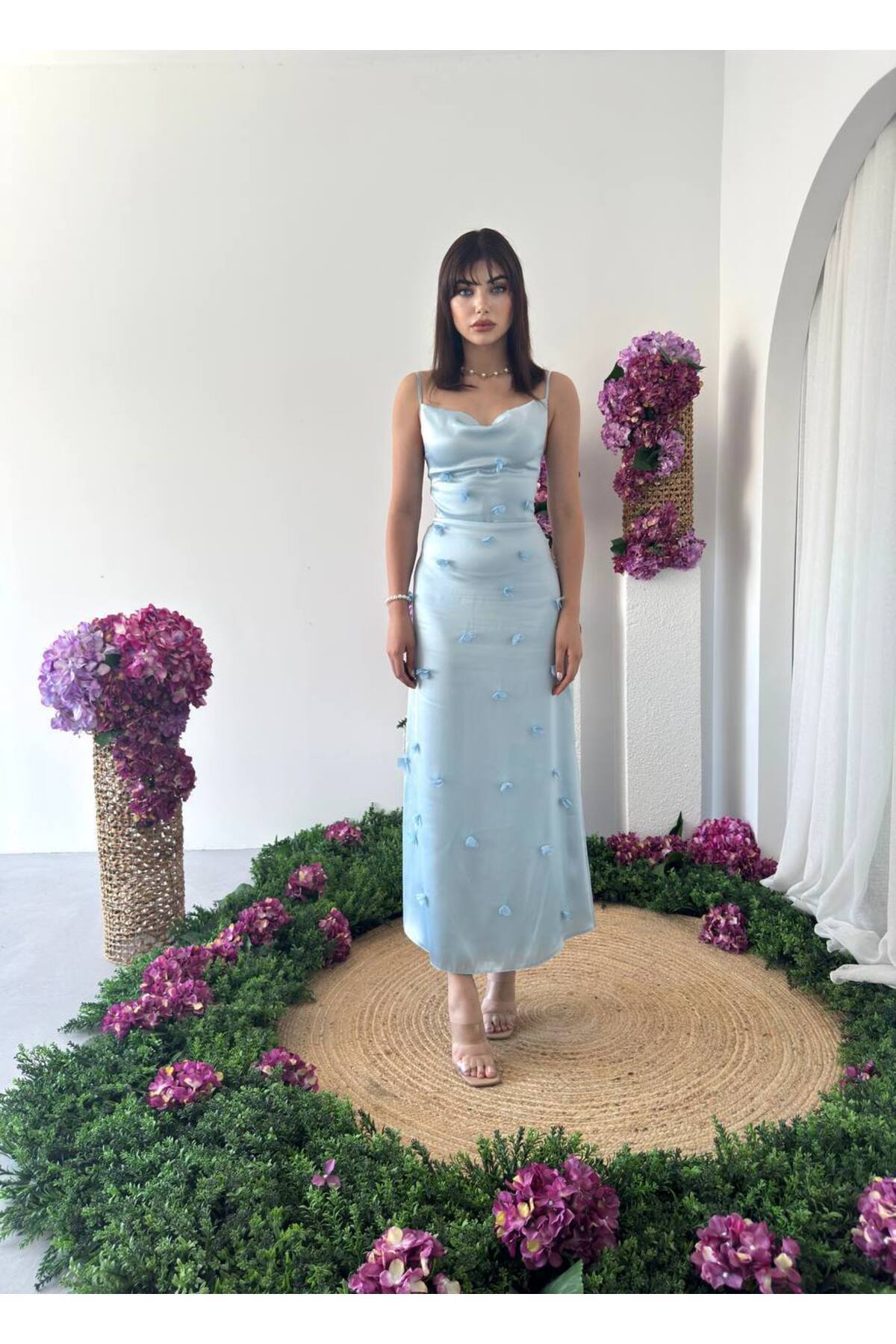 Cera İp Askılı Çiçekli Saten Elbise Cera İp Askılı Çiçekli Saten Elbise AYDZE0003 L