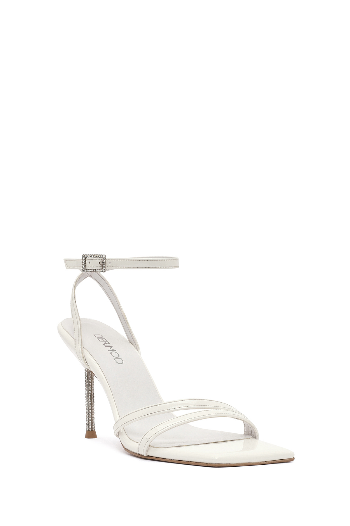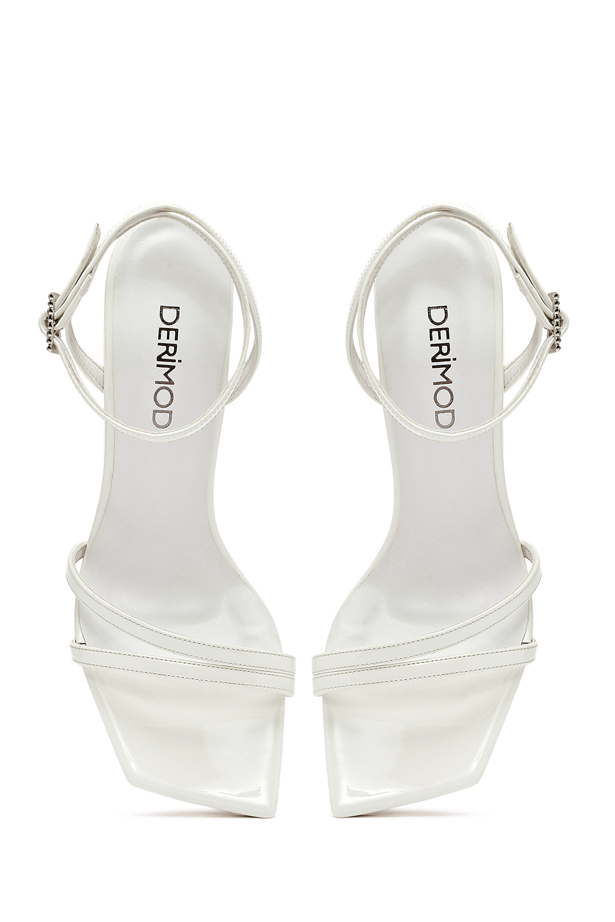 Kadın Beyaz Bilekten Tokalı Taşlı İnce Topuklu Rugan Sandalet 25SFE391416 Kadın Beyaz Bilekten Tokalı Taşlı İnce Topuklu Rugan Sandalet 25SFE391416 40