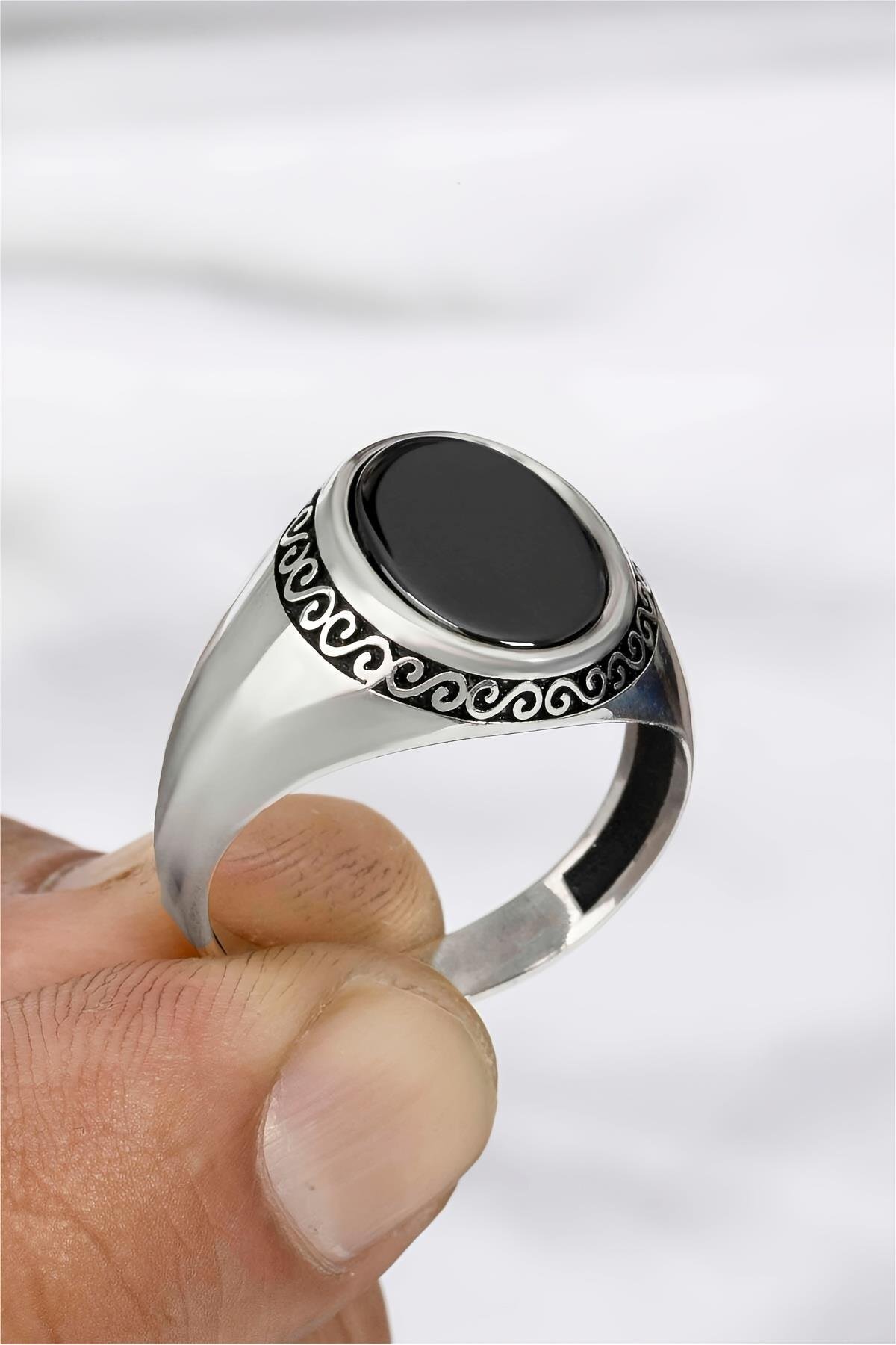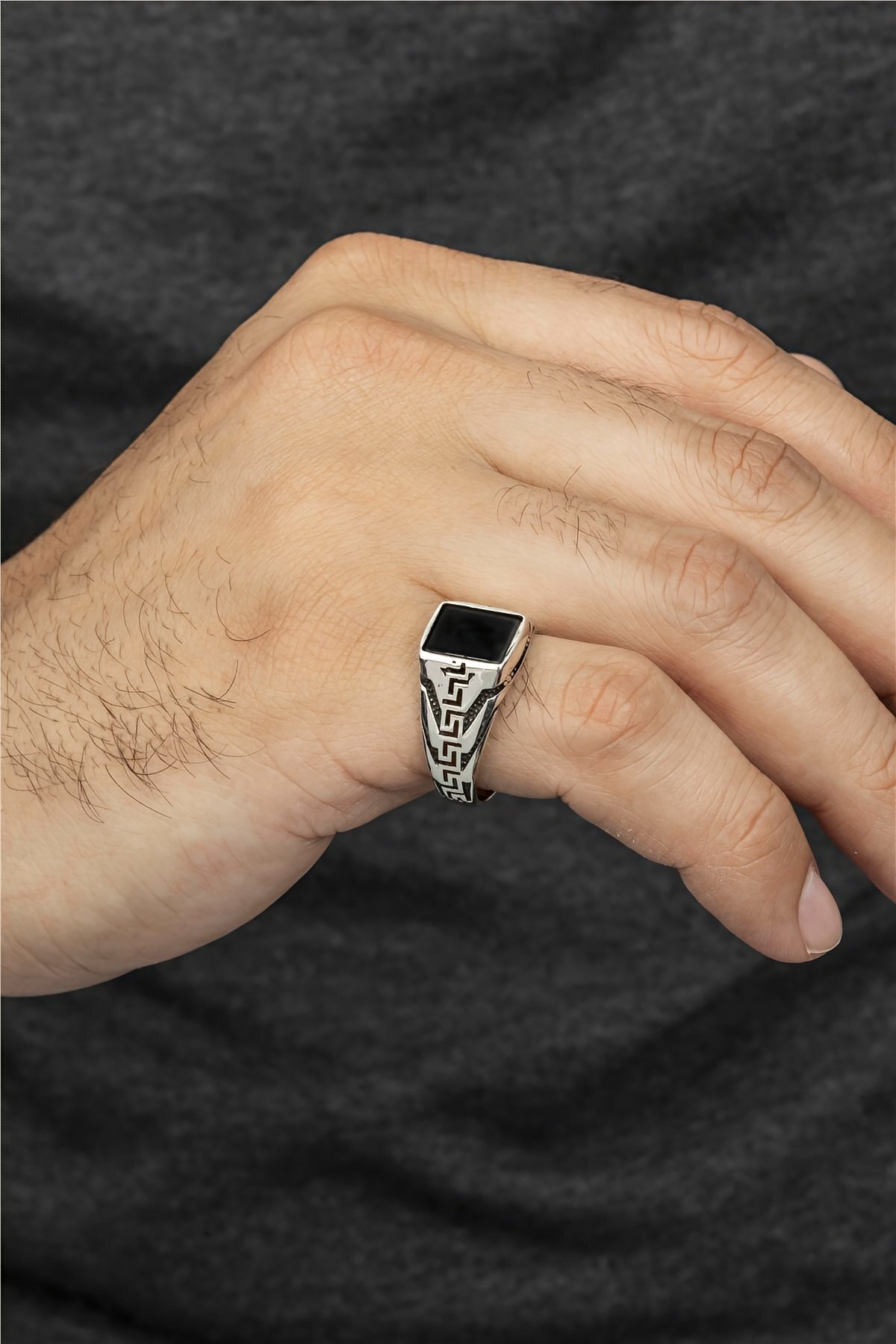 Grek Desenli Kare Oniks Taşlı Gümüş Serçe Parmak Erkek Yüzük Grek Desenli Kare Oniks Taşlı Gümüş Serçe Parmak Erkek Yüzük YZA522 30