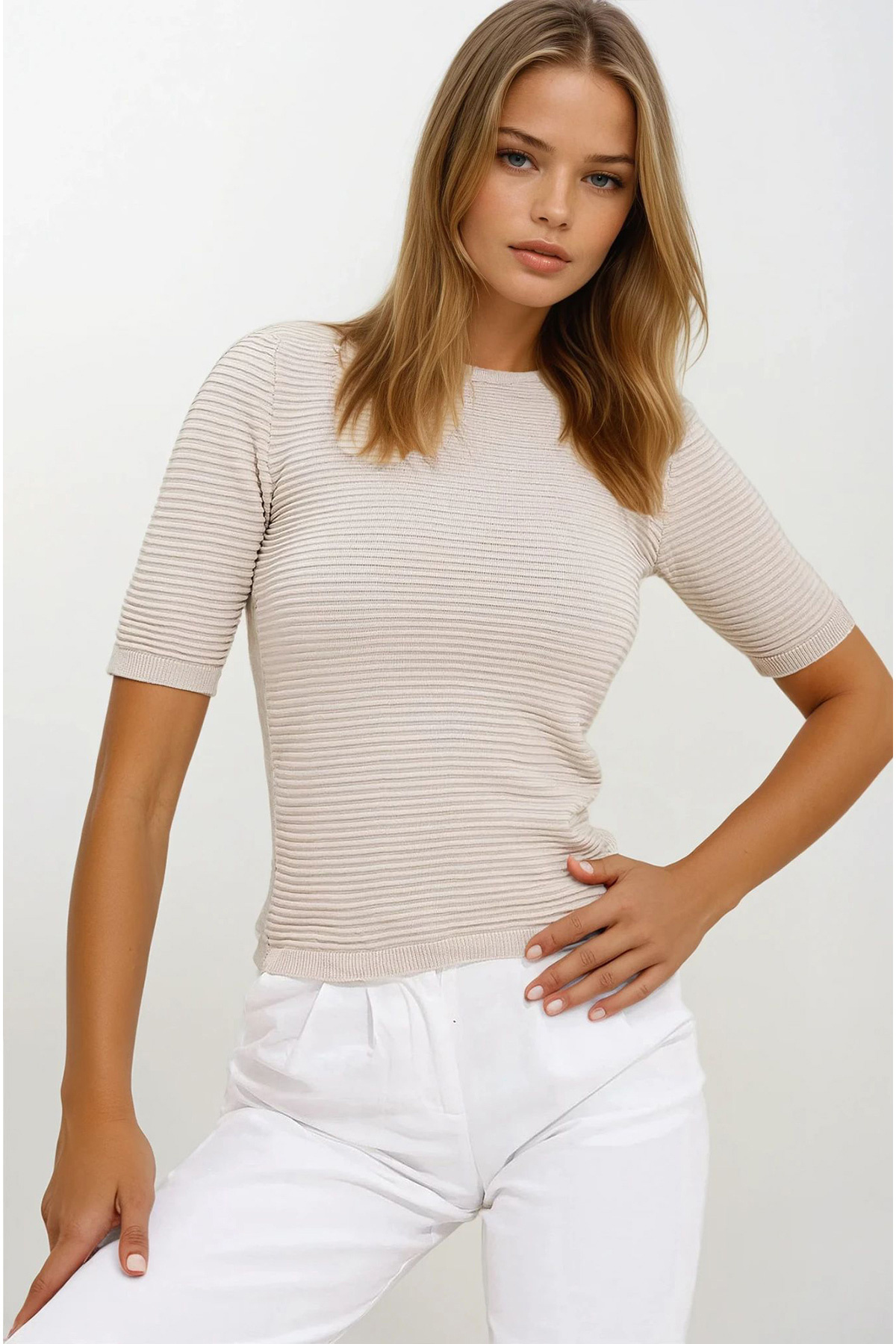 Kadın Bej Bisiklet Yaka Fitilli Ajurlu Yarım Kol Triko Bluz Prmx11558 Kadın Bej Bisiklet Yaka Fitilli Ajurlu Yarım Kol Triko Bluz Prmx11558 PRMX11558 Standart