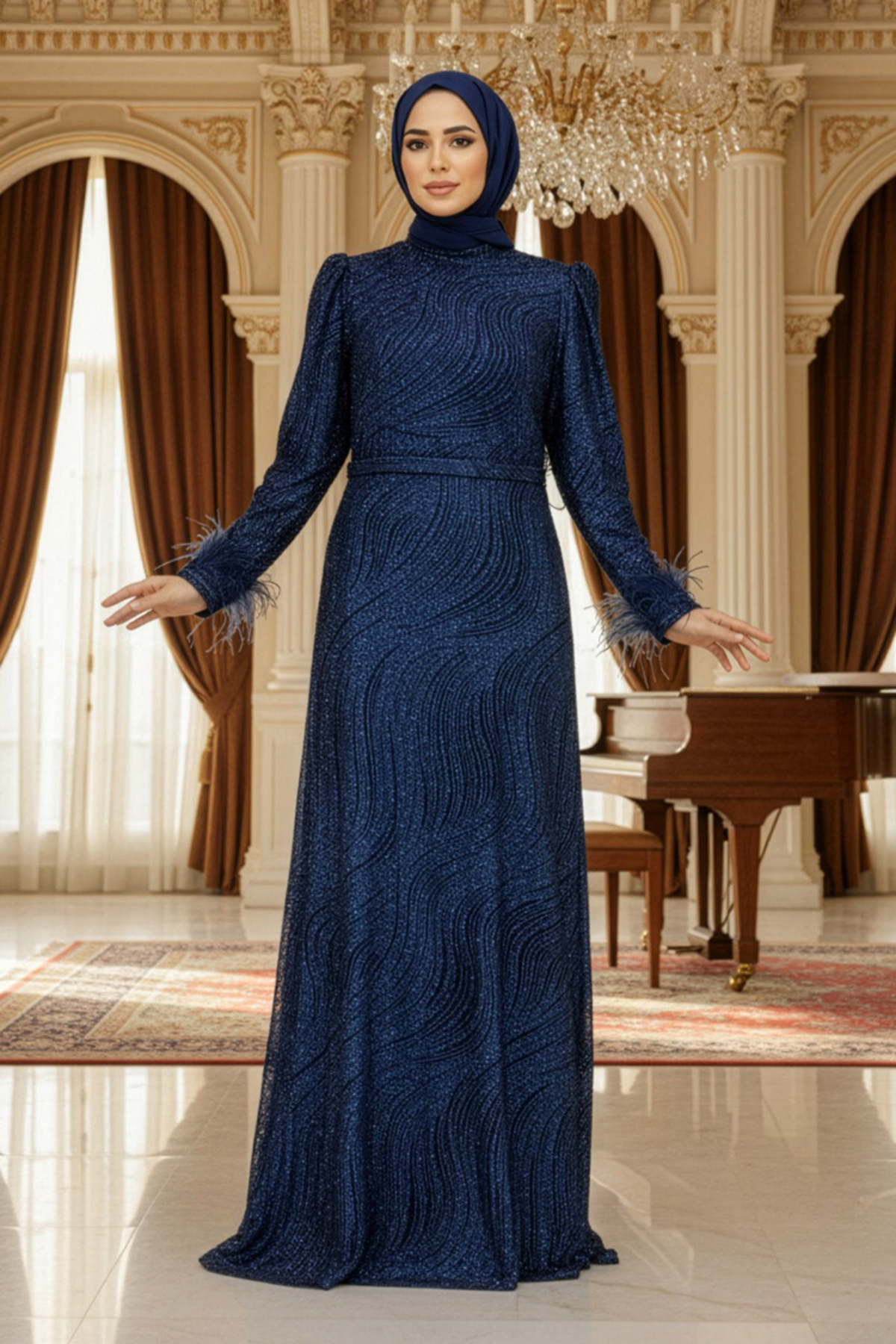 - Boncuk İşlemeli Lila Tesettür Abiye Elbise 50861LILA - Boncuk İşlemeli Lila Tesettür Abiye Elbise 50861LILA OZD-50861 46
