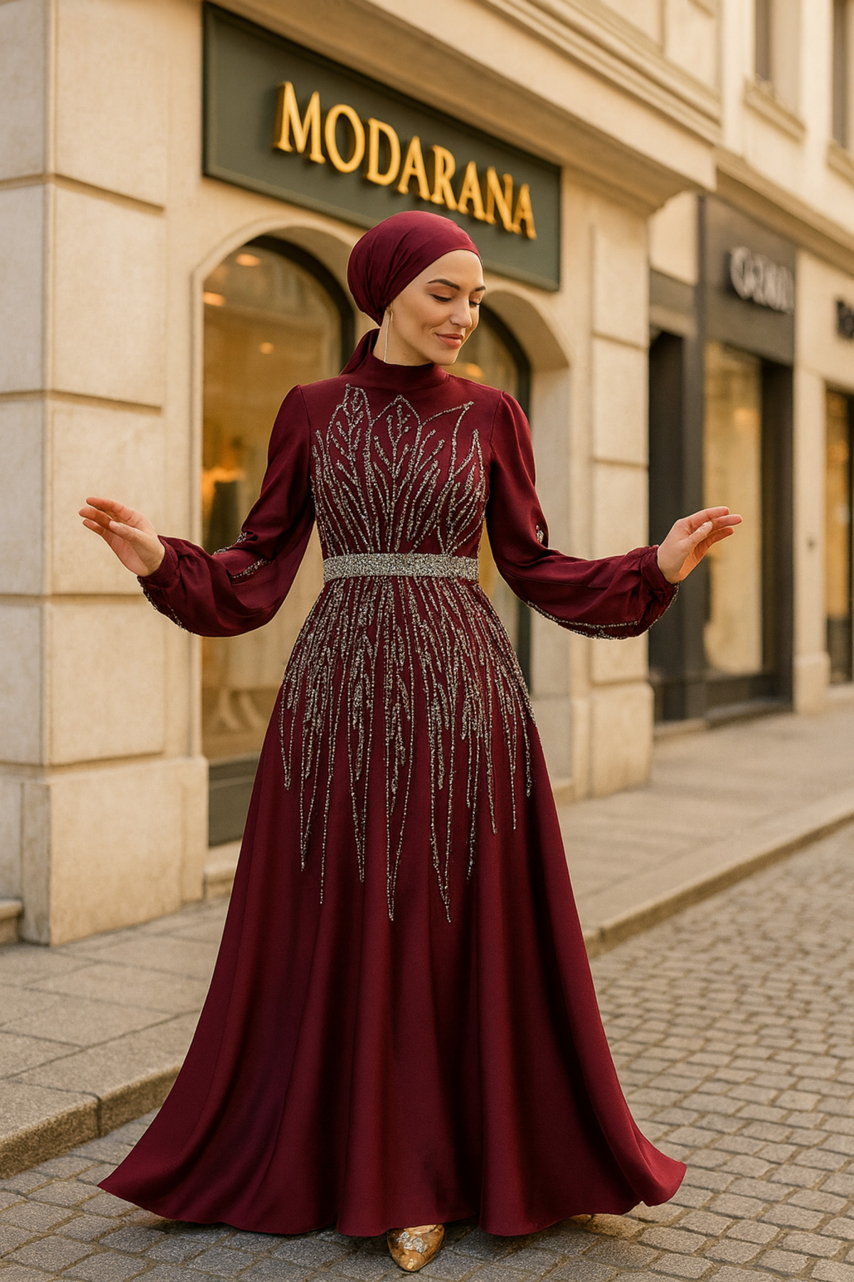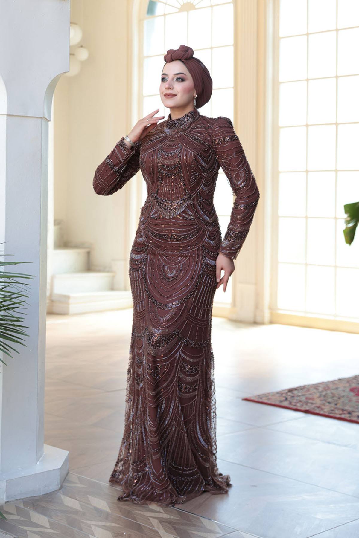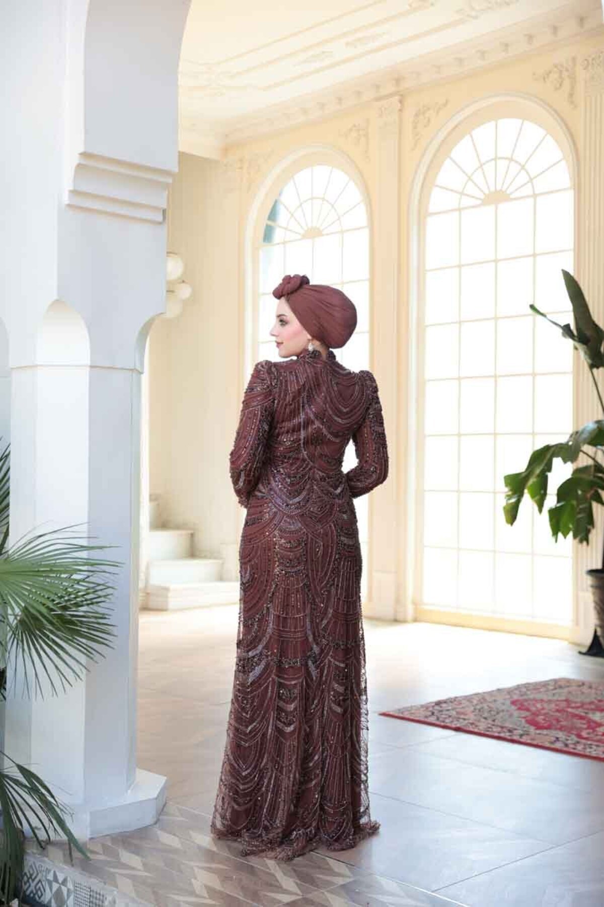 - Boncuk İşlemeli Kahverengi Tesettür Abiye Elbise 51636KH - Boncuk İşlemeli Kahverengi Tesettür Abiye Elbise 51636KH OZD-51636 46