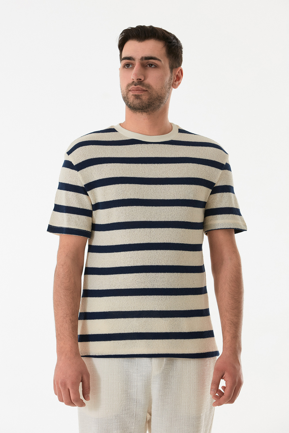Çizgili Ajurlu Bisiklet Yaka Triko Tişört Çizgili Ajurlu Bisiklet Yaka Triko Tişört 25YERK7584217205 2XL
