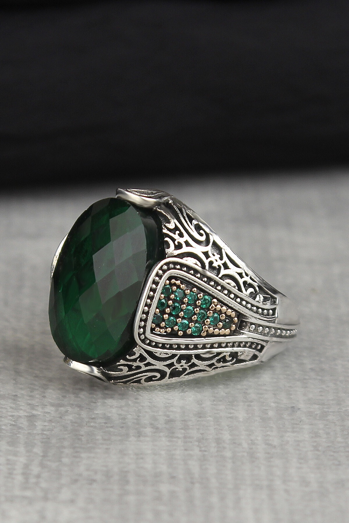 Yeşil Kare Zirkon Taşlı 925 Erkek Gümüş Yüzük Yeşil Kare Zirkon Taşlı 925 Erkek Gümüş Yüzük YZK6651 27