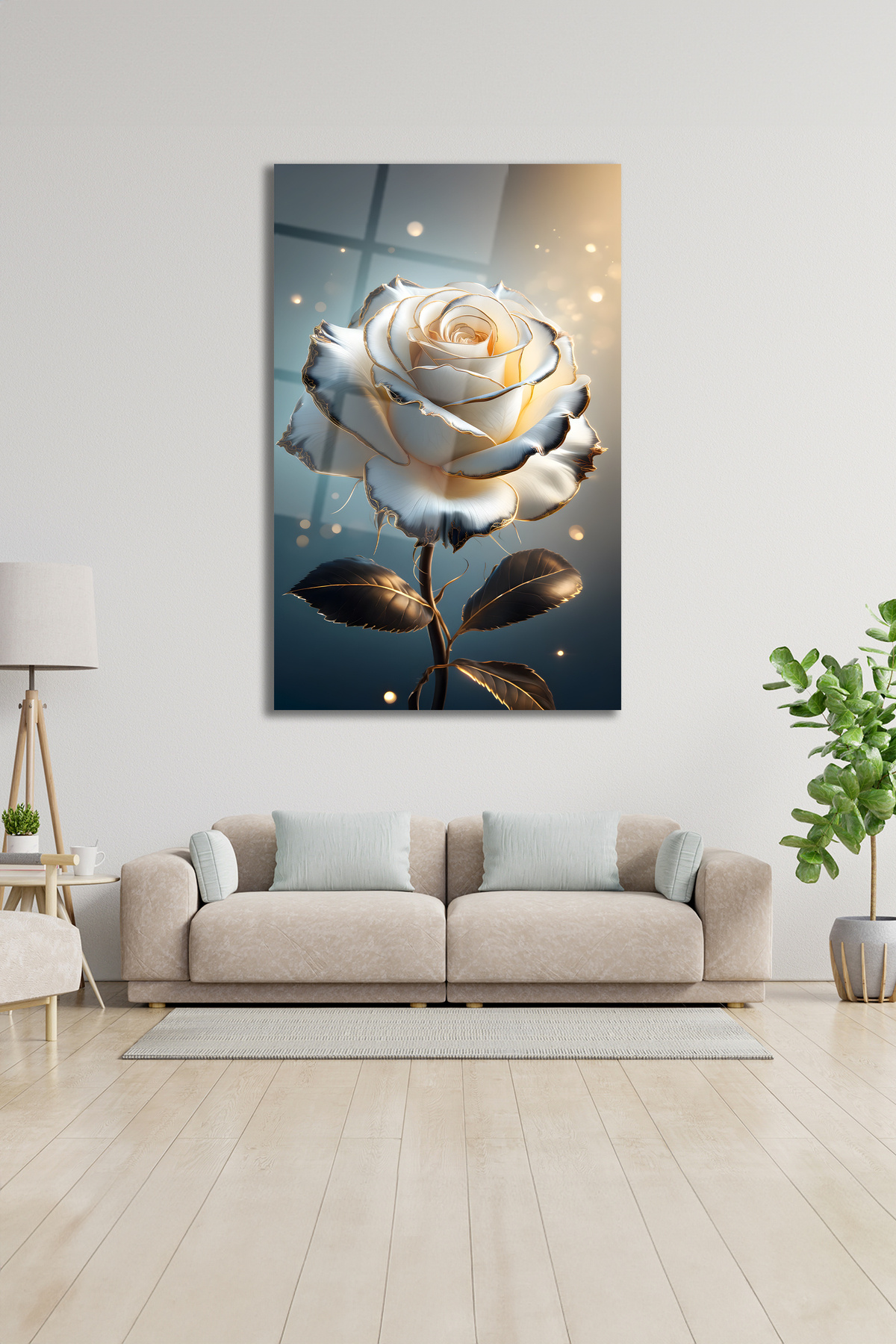 Beyaz Gül Cam tablo Ev ve Ofis Hediyelik Duvar Dekoru Beyaz Gül Cam tablo Ev ve Ofis Hediyelik Duvar Dekoru MH20222 130 x 80