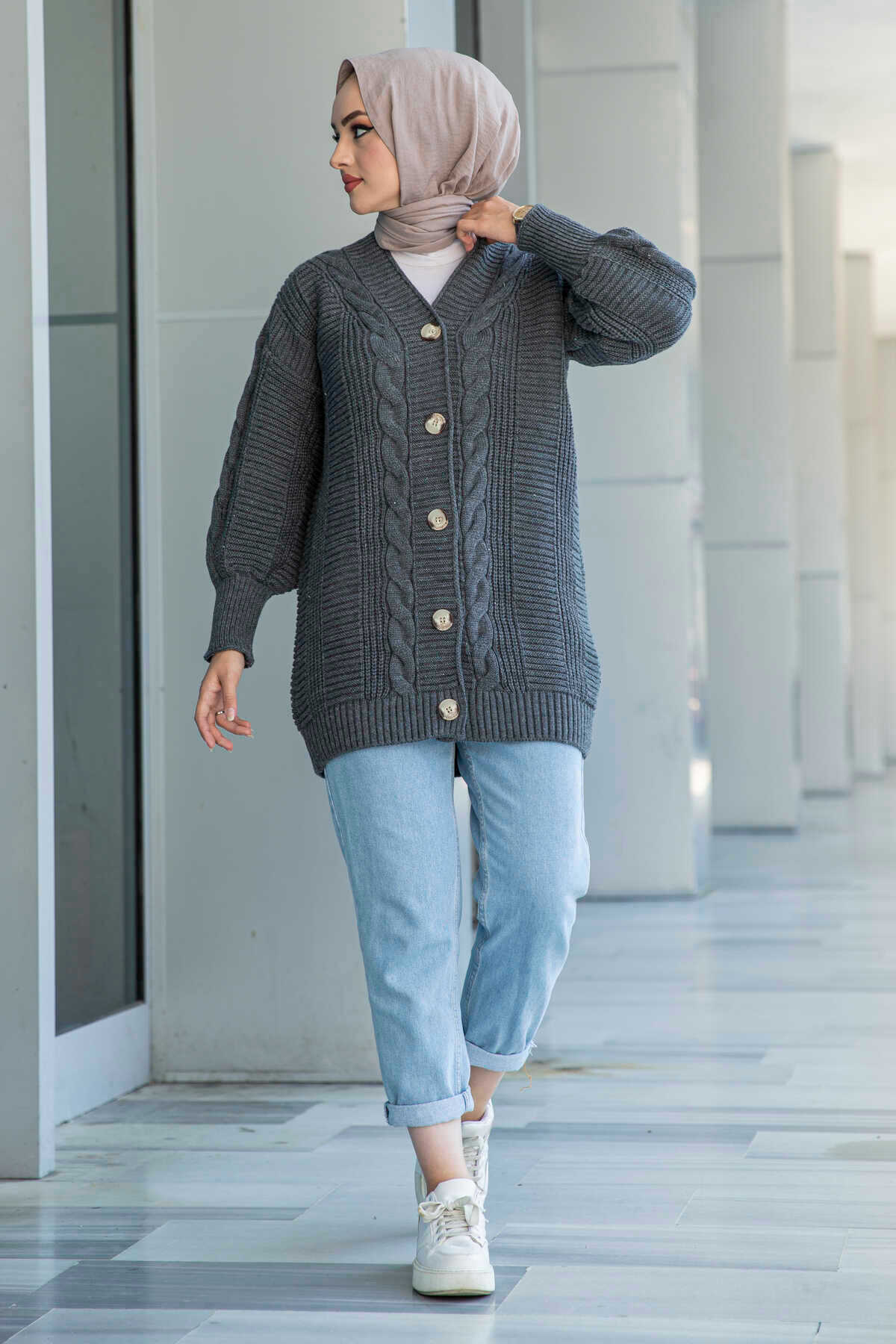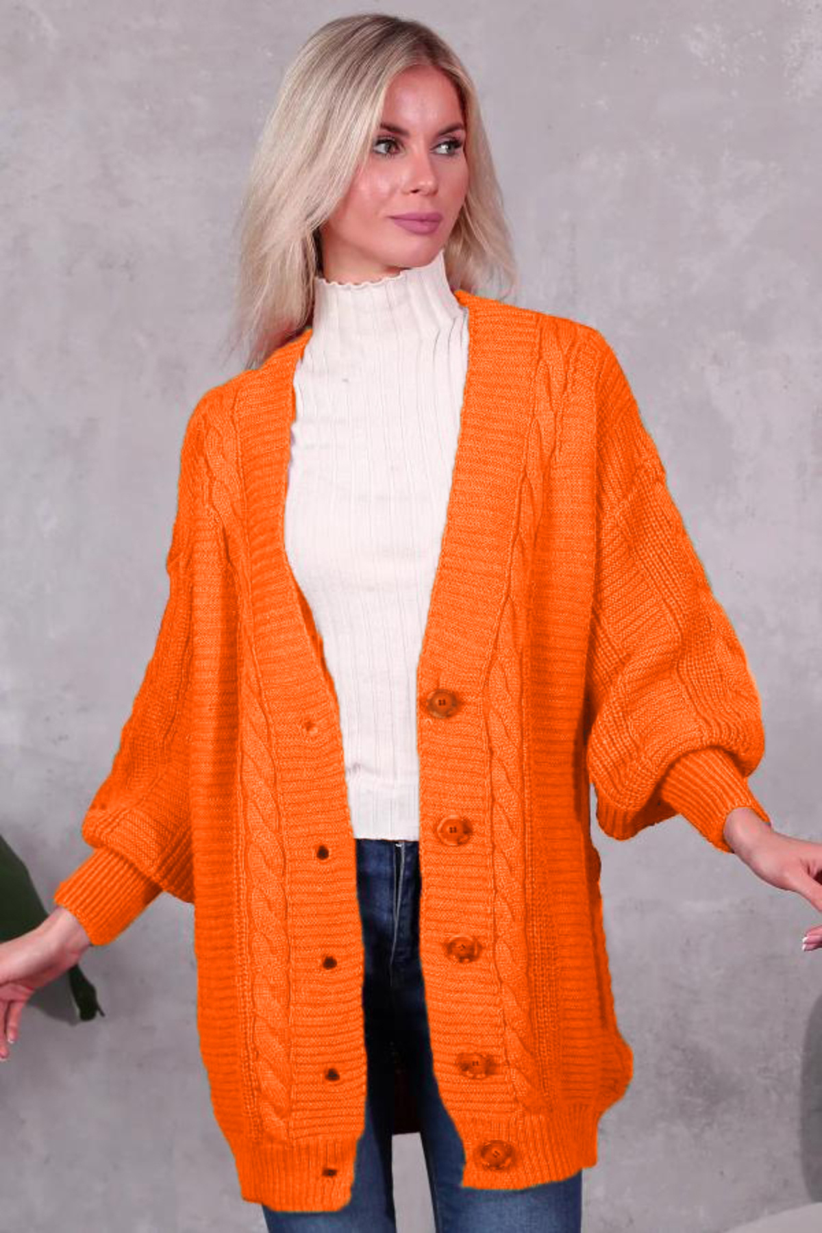 Saç Örgülü Balon Kollu Triko Kışlık Düğmeli Kadın Hırka Saç Örgülü Balon Kollu Triko Kışlık Düğmeli Kadın Hırka 2025Hırka Standart