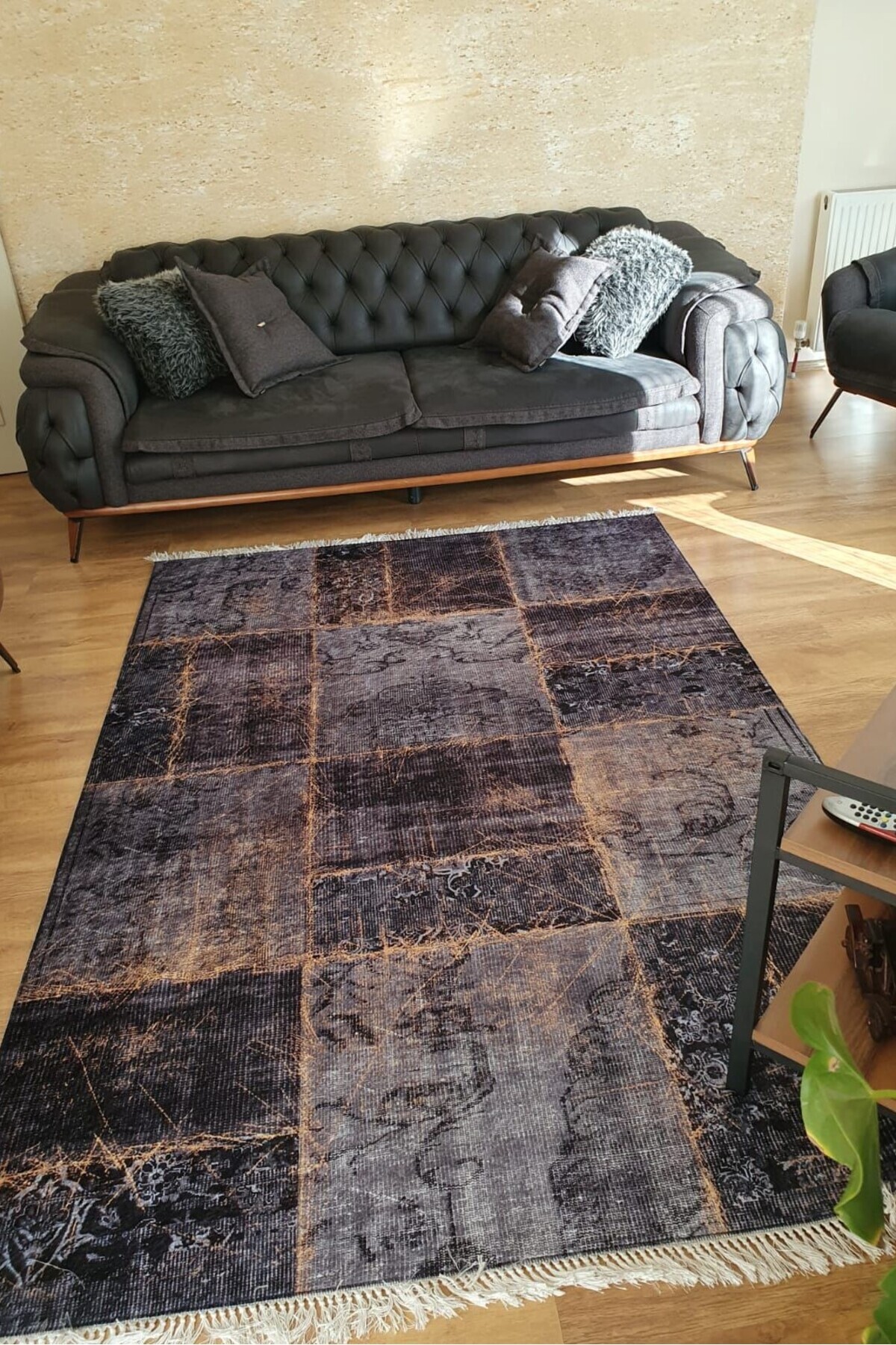 Siyah Gold Halı Salon Halısı Makinede Yıkanabilir Kaymaz Taban Halı Siyah Gold Halı Salon Halısı Makinede Yıkanabilir Kaymaz Taban Halı 1720 Halı 160 x 490