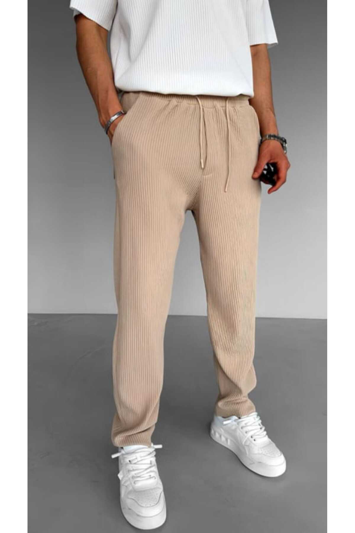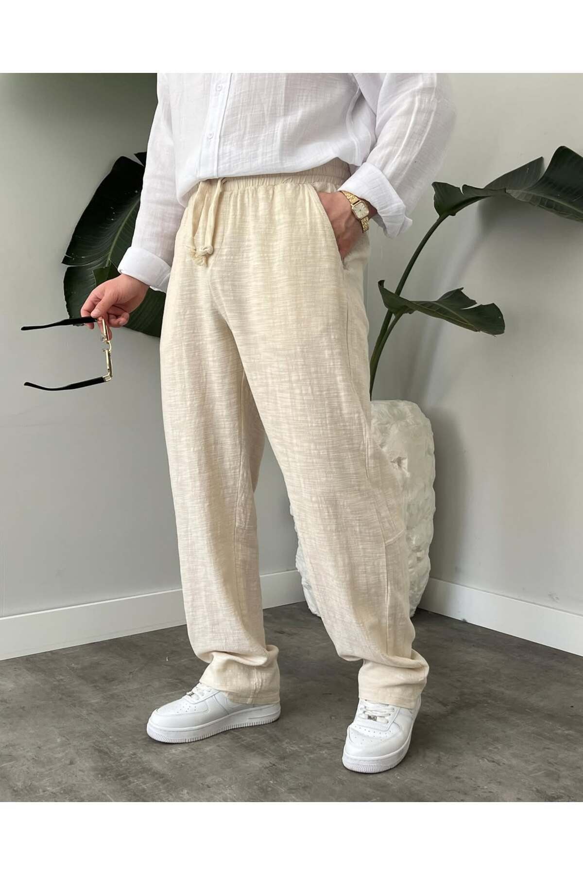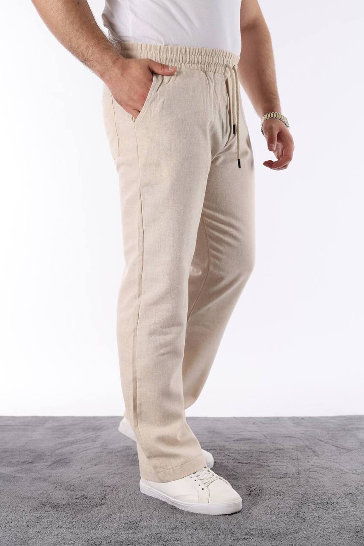 Erkek Bej Renk Lastikli Bel Rahat Kesim Keten Pantolon Erkek Bej Renk Lastikli Bel Rahat Kesim Keten Pantolon 5253 2XL