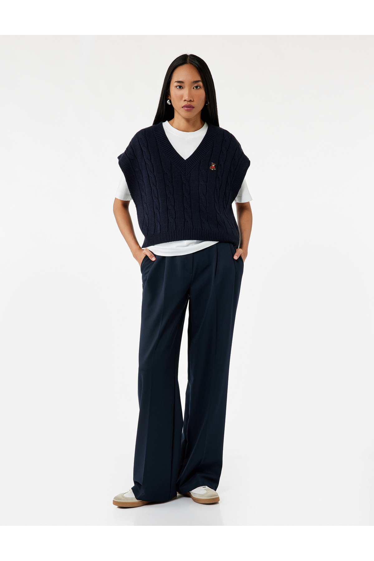 Kolsuz V Yaka Ayıcık İşleme Detaylı Saç Örgü Oversize Süveter Kolsuz V Yaka Ayıcık İşleme Detaylı Saç Örgü Oversize Süveter 6WAK20012HT XL