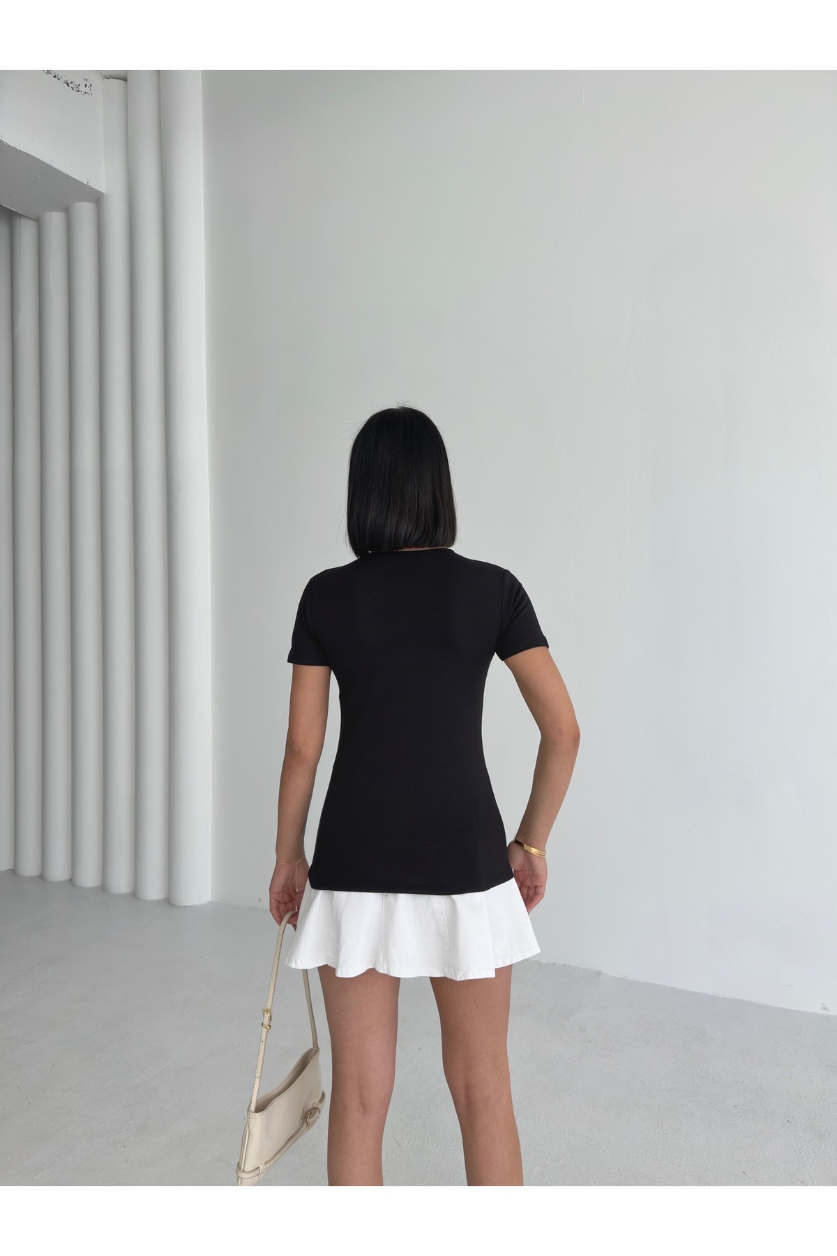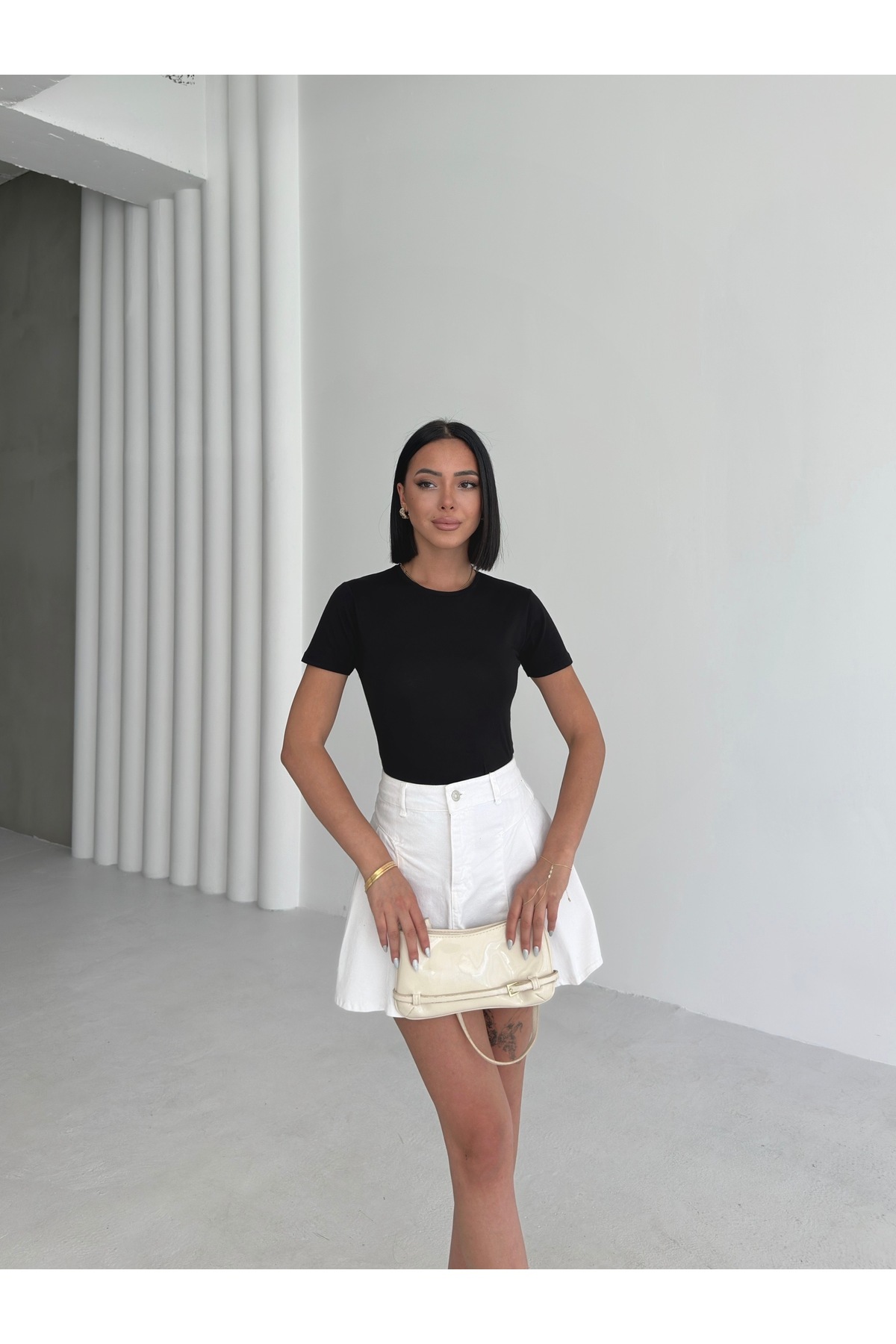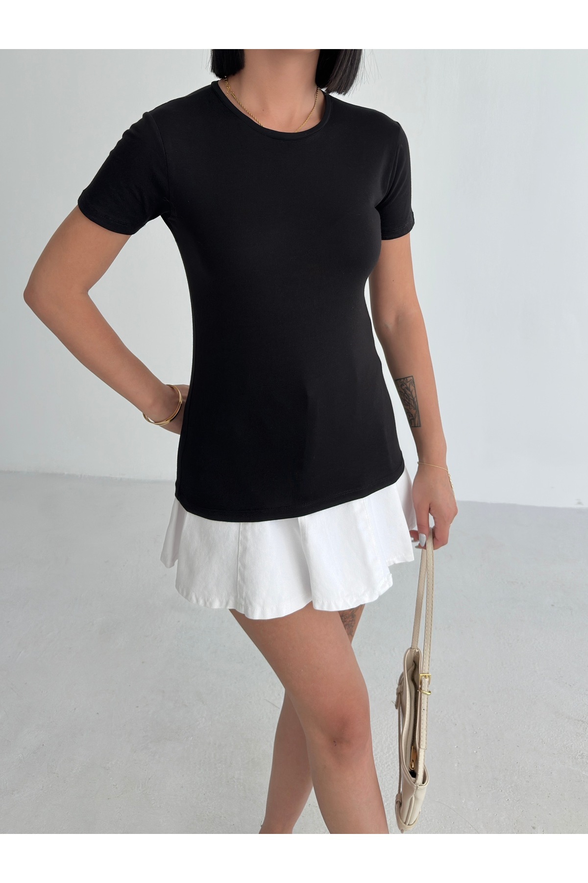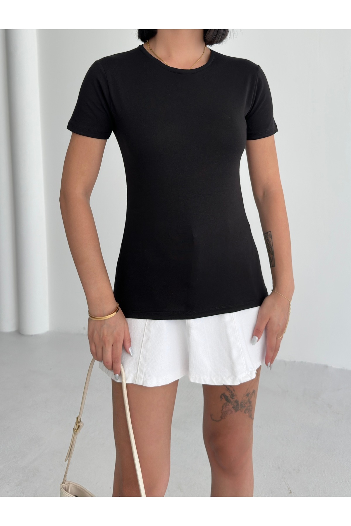 Bisiklet Yaka Kısa Kol Pamuklu Body Siyah-Siyah Bisiklet Yaka Body Tişört T-shirt Bisiklet Yaka Kısa Kol Pamuklu Body Siyah-Siyah Bisiklet Yaka Body Tişört T-shirt LNM038 XL