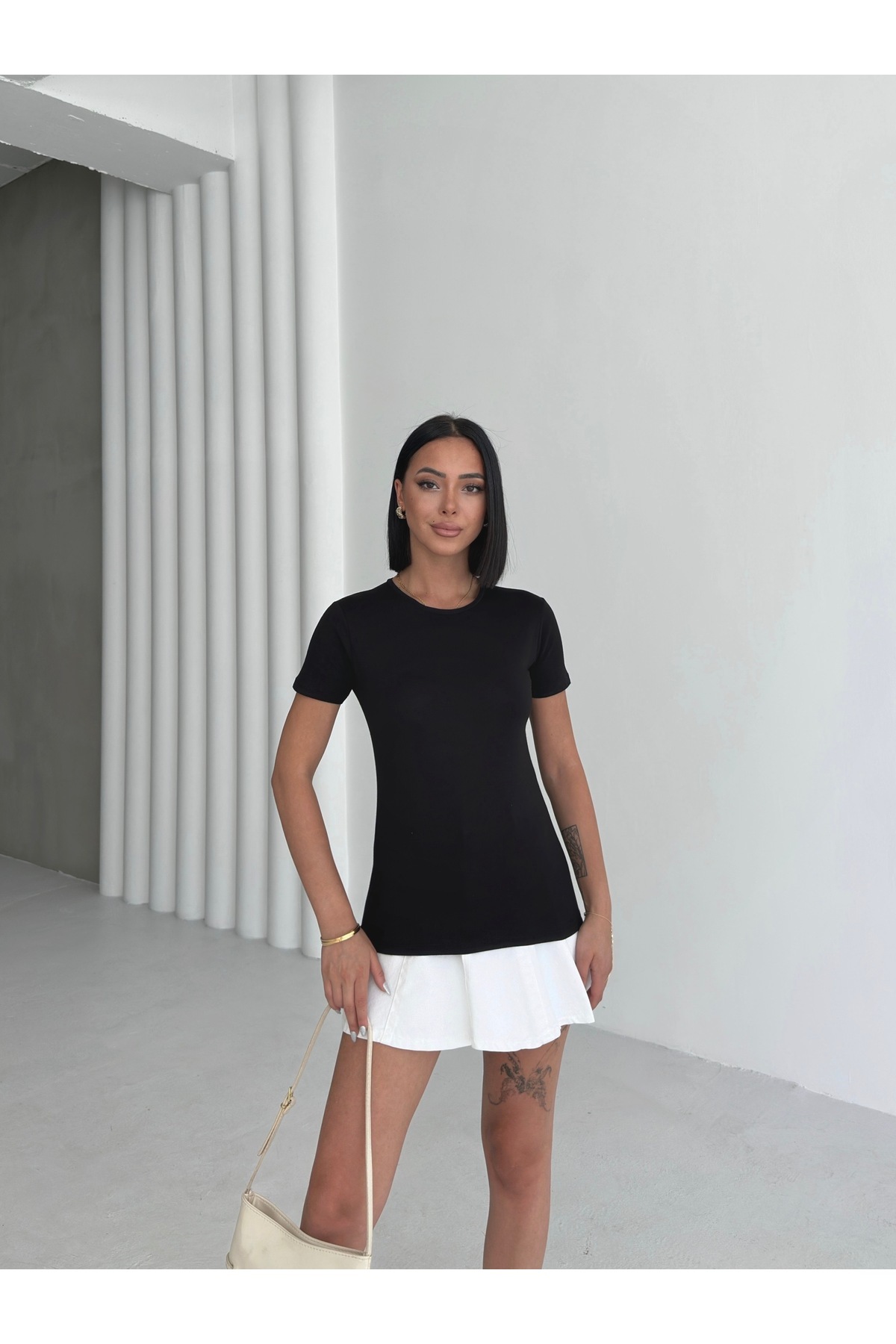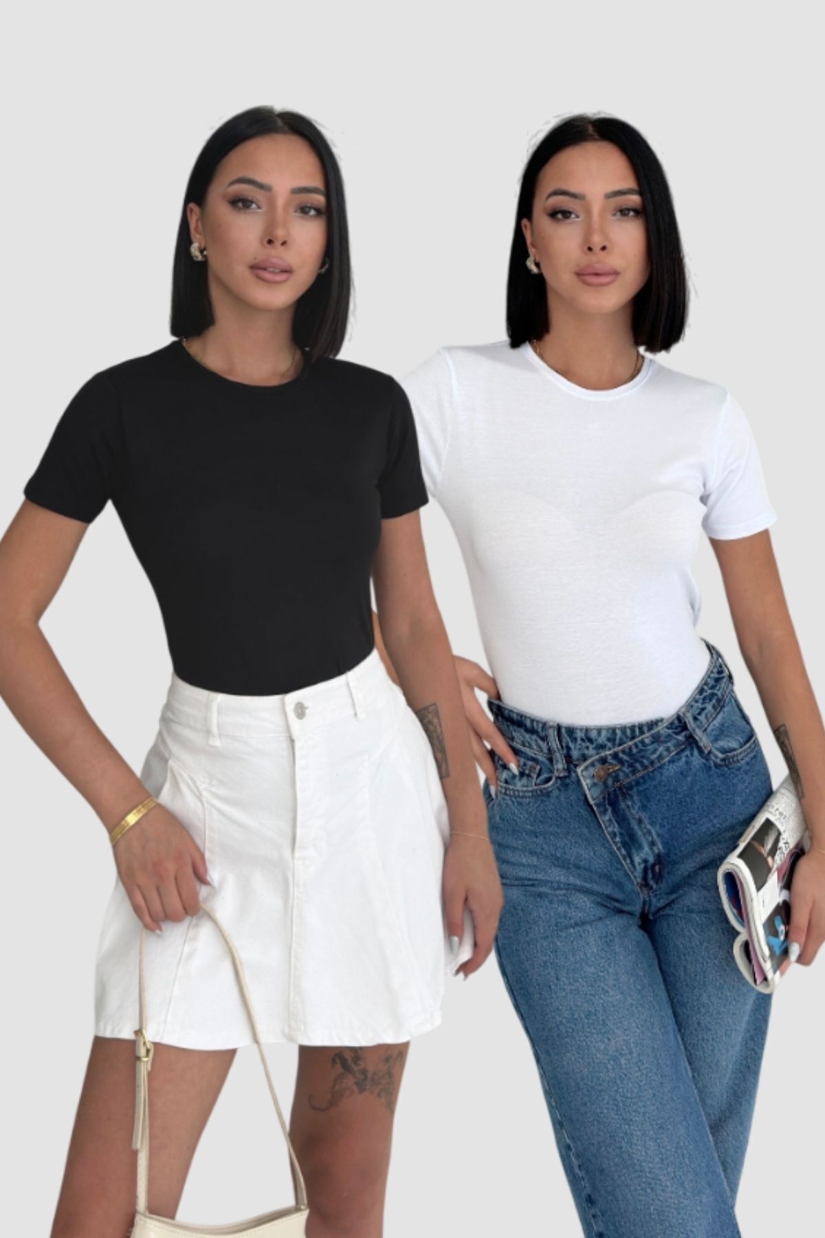 Bisiklet Yaka Kısa Kol Pamuklu Body Siyah-Beyaz Bisiklet Yaka Body Tişört T-shirt Bisiklet Yaka Kısa Kol Pamuklu Body Siyah-Beyaz Bisiklet Yaka Body Tişört T-shirt LNM038 XL