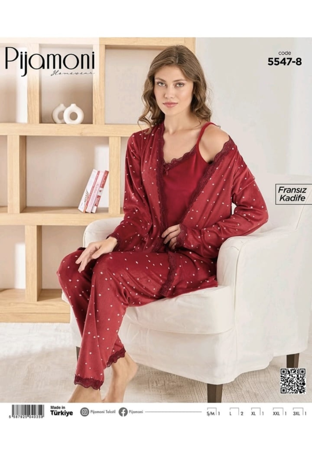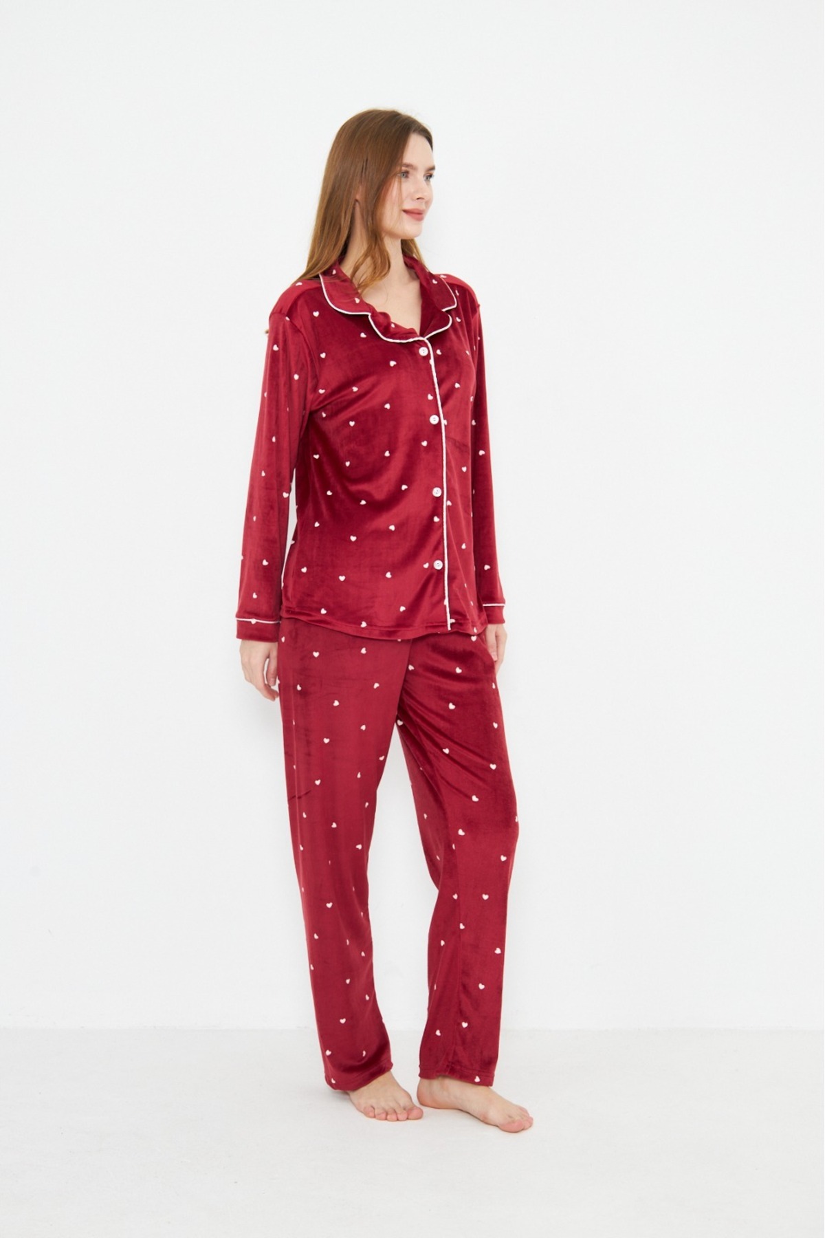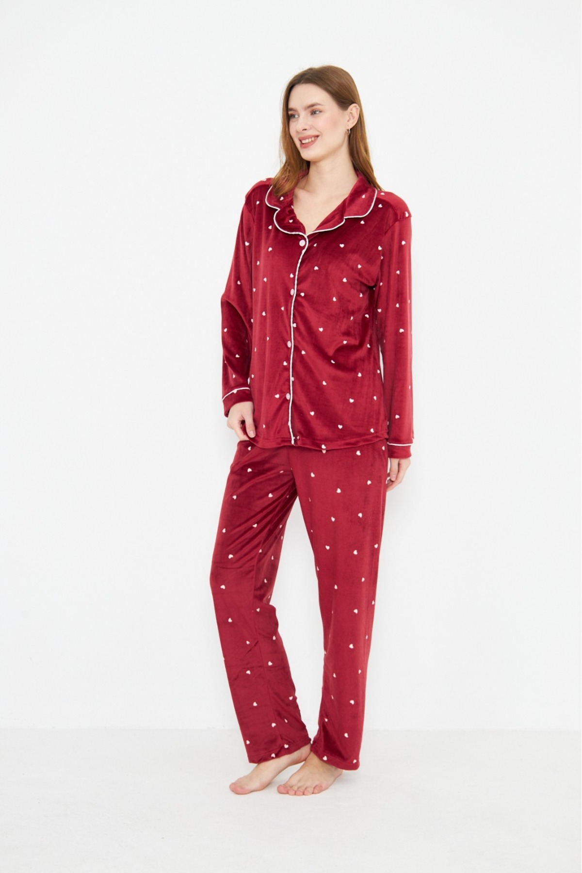 Kadın Pamuklu Luxury Kadife Bordo Kalpli Gömlek Yaka Boydan Düğmeli Beyaz Biyeli Pijama Takımı Kadın Pamuklu Luxury Kadife Bordo Kalpli Gömlek Yaka Boydan Düğmeli Beyaz Biyeli Pijama Takımı sl15521 2XL