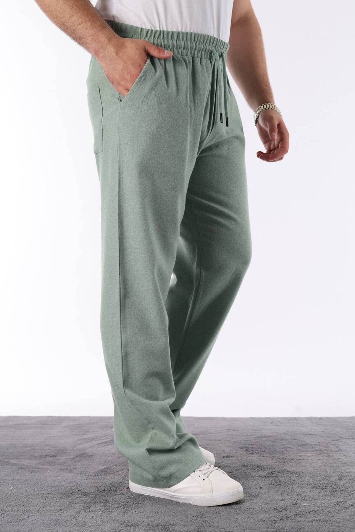 Erkek Açık Yeşil Renk Lastikli Bel Rahat Kesim Keten Pantolon Erkek Açık Yeşil Renk Lastikli Bel Rahat Kesim Keten Pantolon 5253 2XL